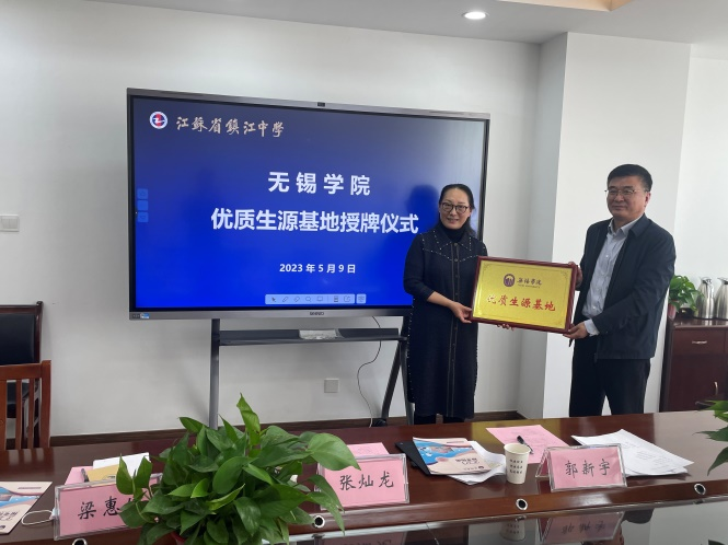 为更好宣传学校招生政策,加强与重点生源学校的交流,5月9日,副校长梁惠娥带队赴镇江中学开展“优秀生源基地”授牌仪式。学工处处长张灿龙、传媒与艺术学院副院长刘棠,传媒与艺术学院分团委书记郭新宇参加会议。会议由镇江中学党委书记冯章葆主持。