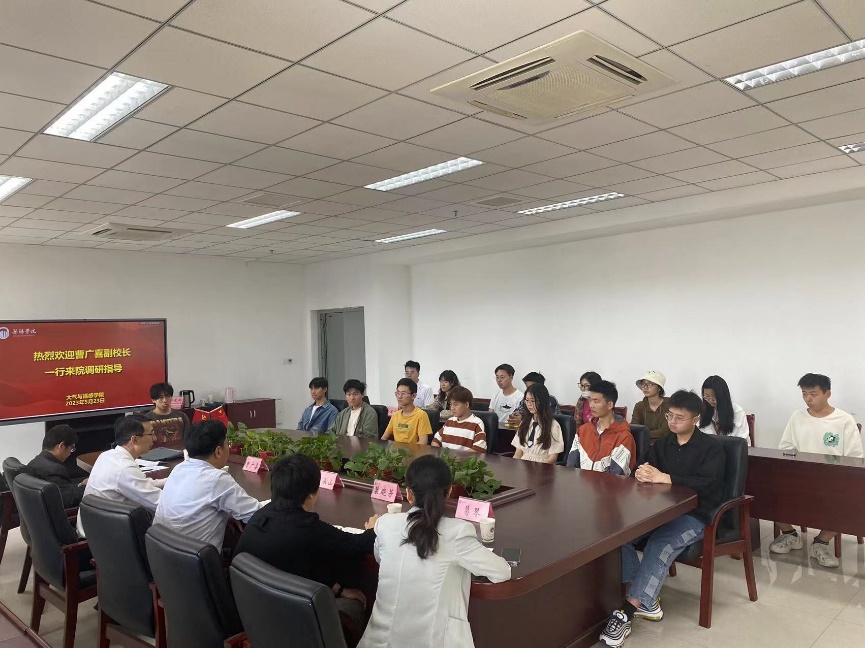 5月23日上午,副校长曹广喜带队,教务处、学科建设与研究生管理处相关负责人陪同到大气与遥感学院调研指导,大气与遥感学院相关负责人及师生代表参加座谈会。