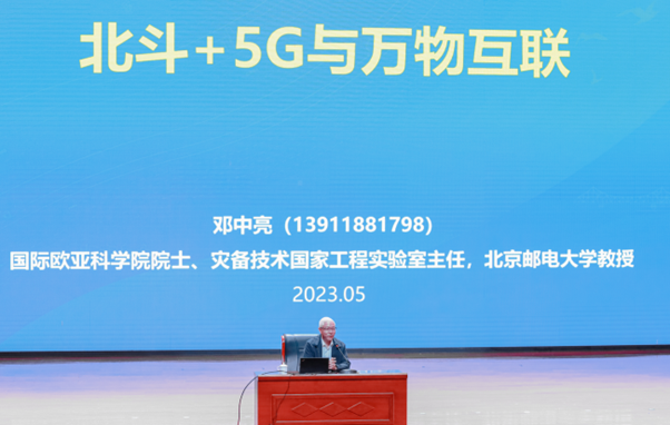 活动现场,邓中亮院士以“北斗+5G与万物互联”为题发表主题演讲。从万物互联与时空感知、通信与导航深度融合、“5G+北斗”发展机遇、未来展望等方面开展了精彩分享。