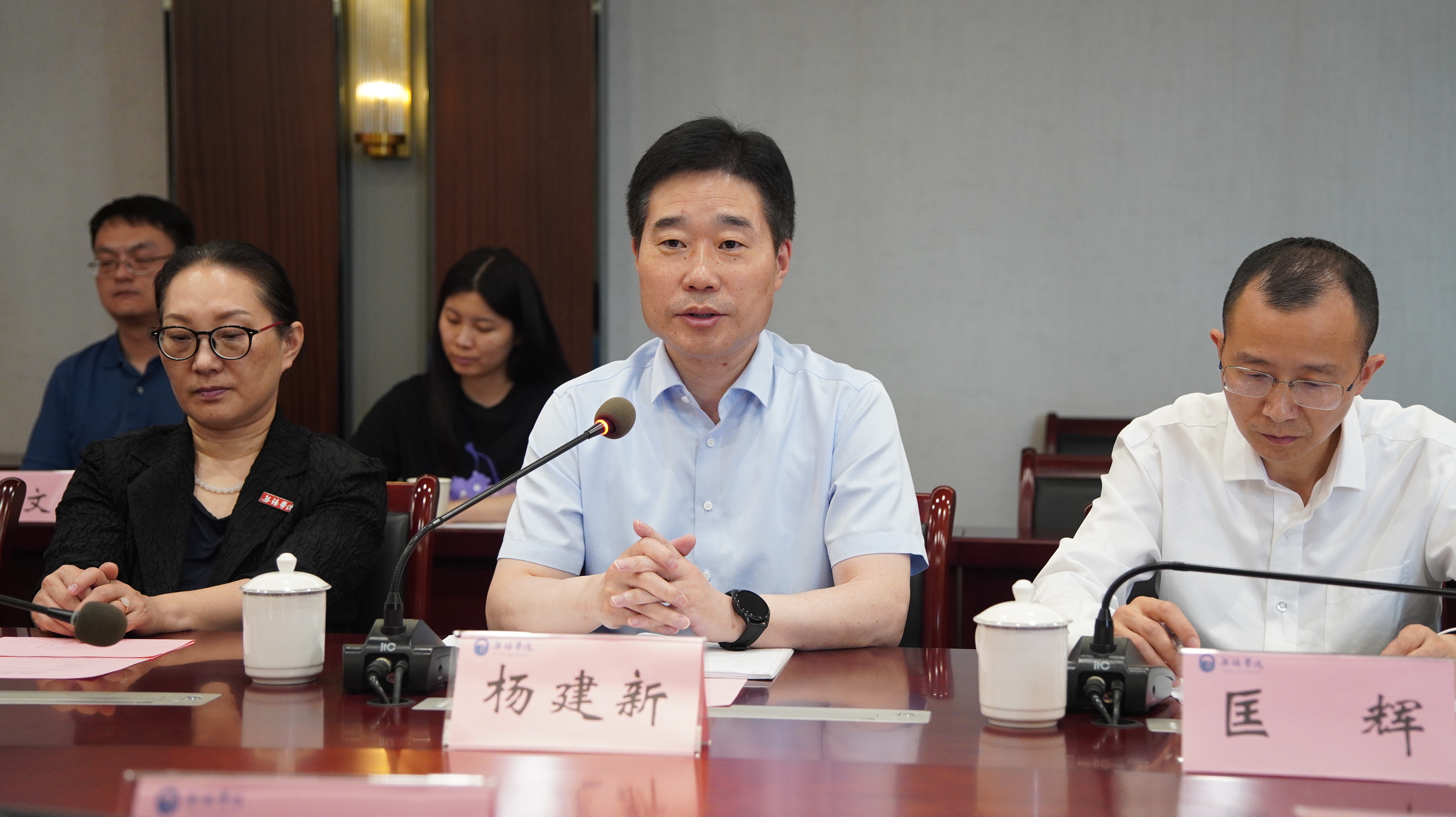 为搭建学术和教学平台、组建研究和教育团队,赓续无锡国专精神,创建文化传承基地,弘扬中华优秀传统文化,6月5日上午,我校与无锡市国专历史研究会共建无锡国专研究中心签约仪式在行政楼525会议室举行。校党委书记杨建新,无锡市社科联党组书记、主席李明新,无锡市国专历史研究会会长严克勤、副校长梁惠娥出席仪式,仪式由校党委副书记匡辉主持。无锡市社科联科普和学会部主任王广艳,无锡市国专历史研究会副会长徐忠宪、陆晓鹤、武频圆、李素洁、秘书长倪向阳、特聘副会长刘桂秋及学校相关职能部门、二级学院负责人和教师代表等参加仪式。