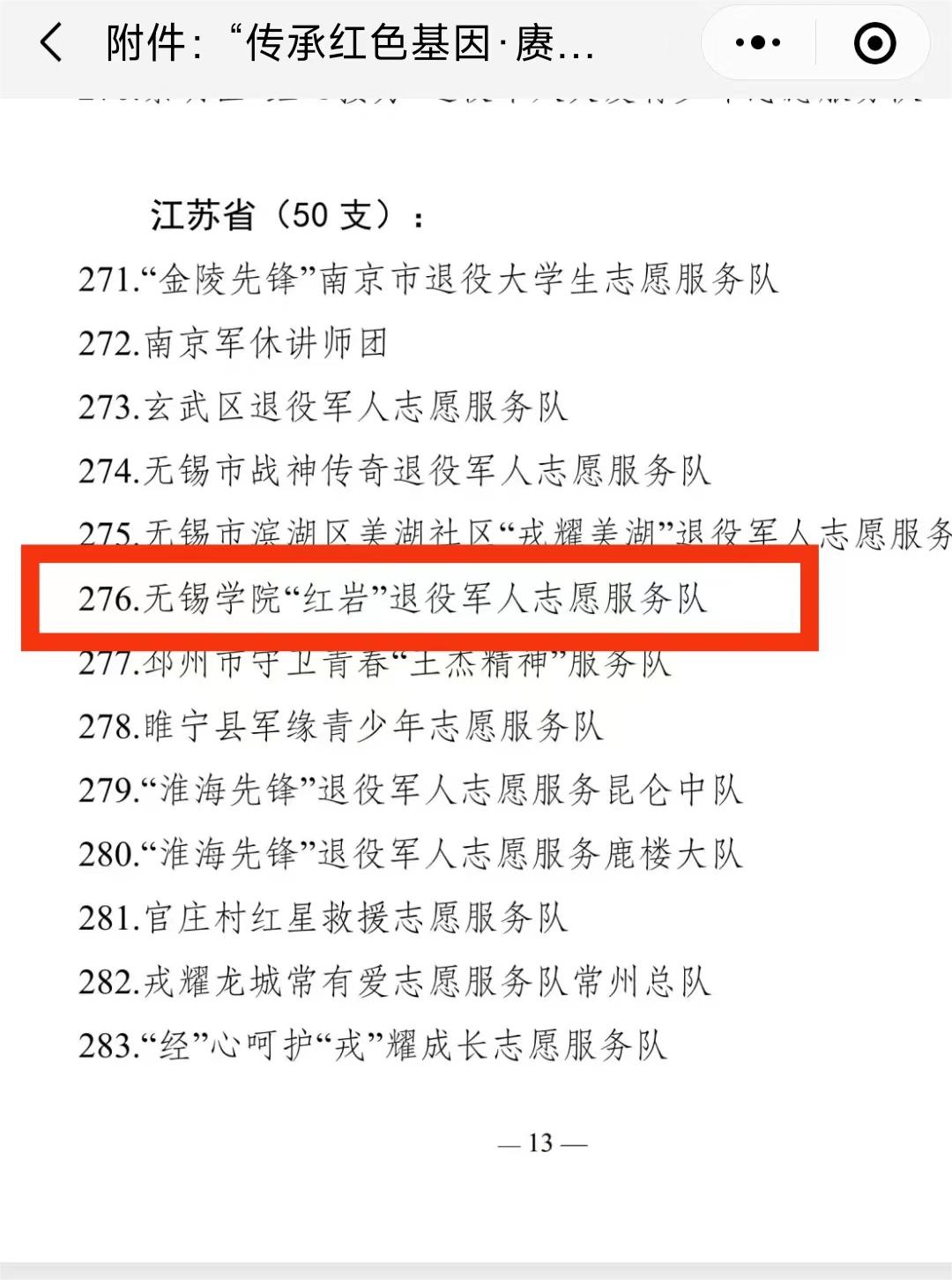 我校是无锡市“优质兵员储备基地”,历来高度重视发挥退役大学生的模范作用。学校将以此次入选为契机,围绕立德树人根本任务,与主题教育紧密结合,深入推进校地融合,扎实推进团队的各项志愿服务工作,进一步增强实践育人导向,打造学校志愿服务活动品牌。(团委/文、图:孟艳芳;审核:李沛武)