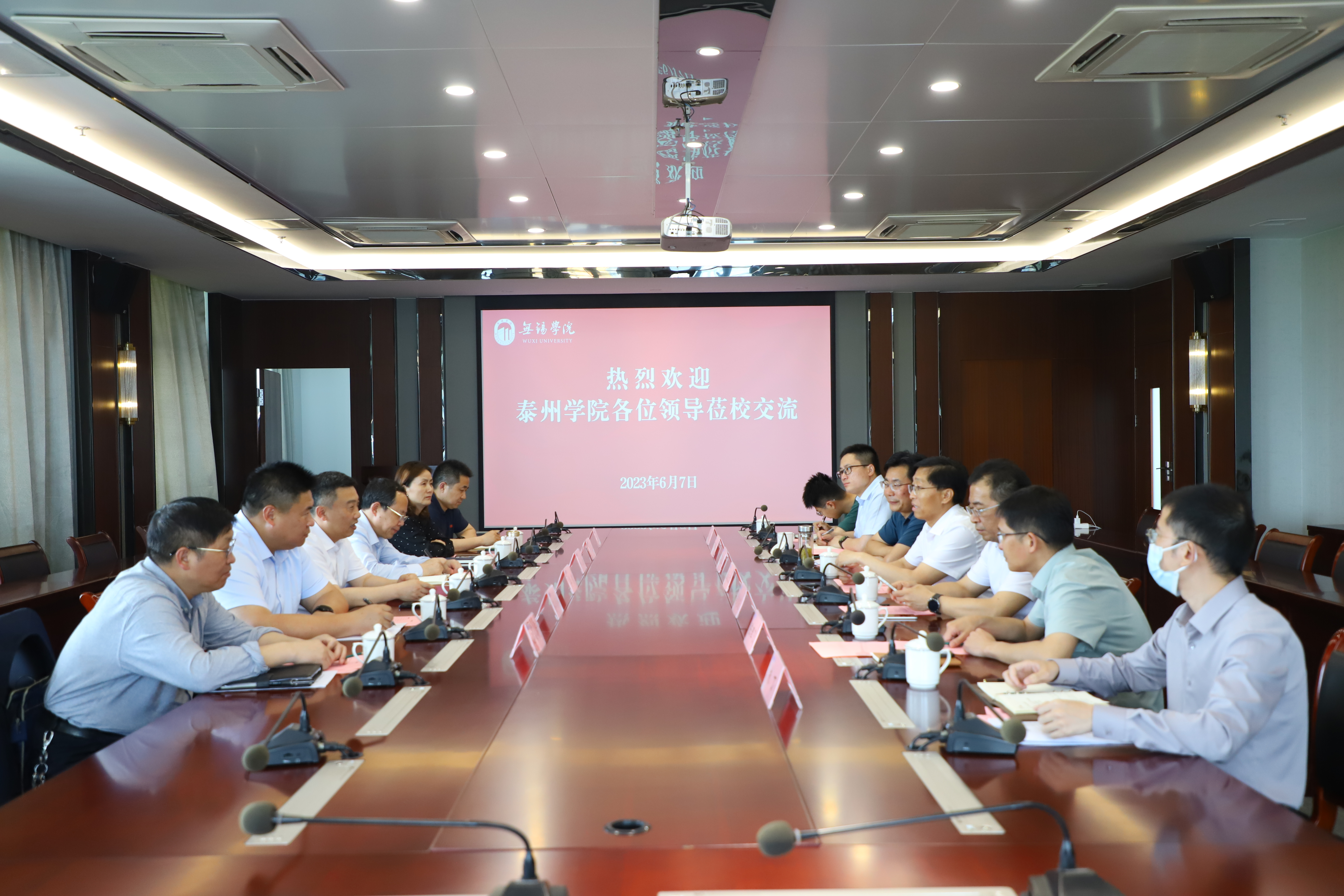 6月7日下午,泰州学院校长季赛一行6人来校调研交流,校长张永宏,副校长胡剑凌及相关职能部门负责人出席会议,会议由胡剑凌主持。