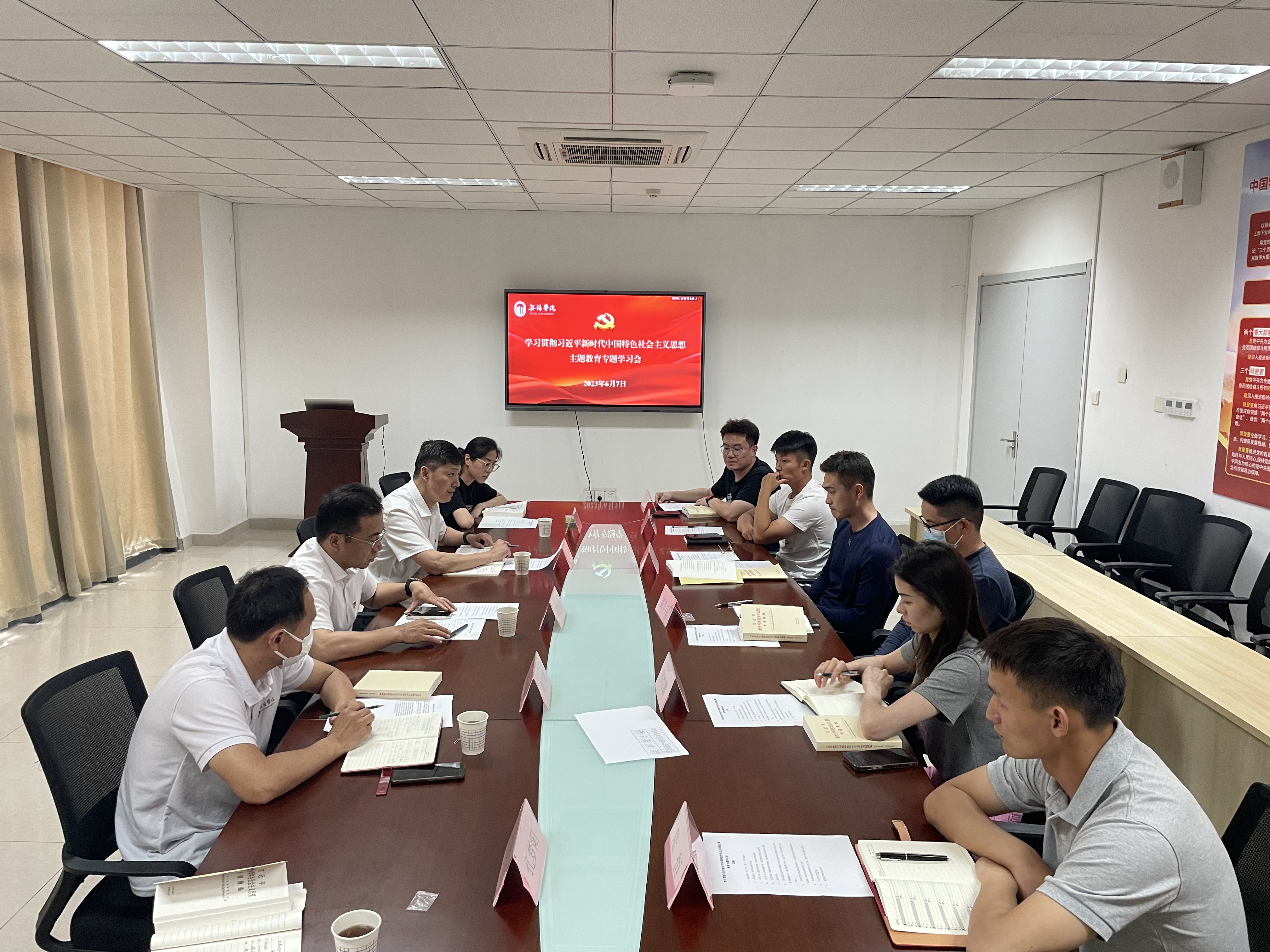 为深入开展学习贯彻习近平新时代中国特色社会主义思想主题教育,6月7日下午,体育部教工党支部于体育馆204召开学习贯彻习近平新时代中国特色社会主义思想主题教育专题学习会。副校长胡剑凌旁听参加了学习并作讲话,会议由宋巨华主持。