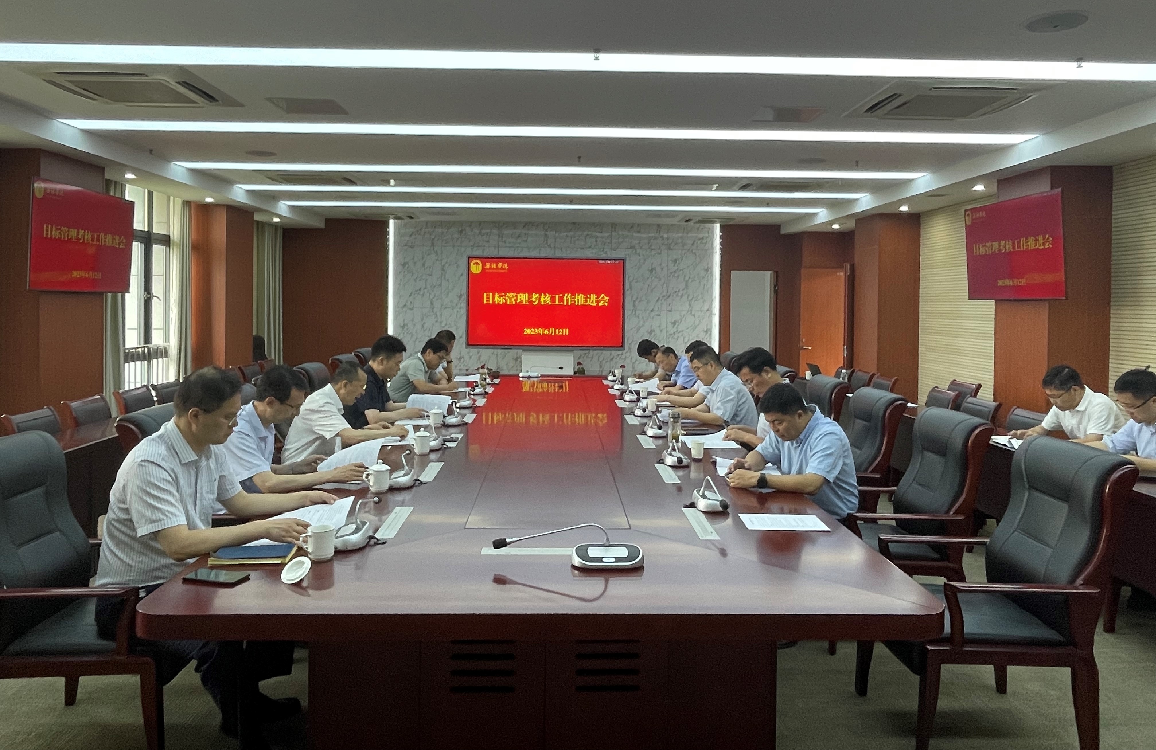 6月12日上午,学校在行政楼327会议室召开了目标管理考核工作推进会。党委书记杨建新、党委副书记匡辉、副校长曹广喜、纪委书记王友明、副校长胡剑凌、副校长左同宇及相关职能部门负责人参加了会议。