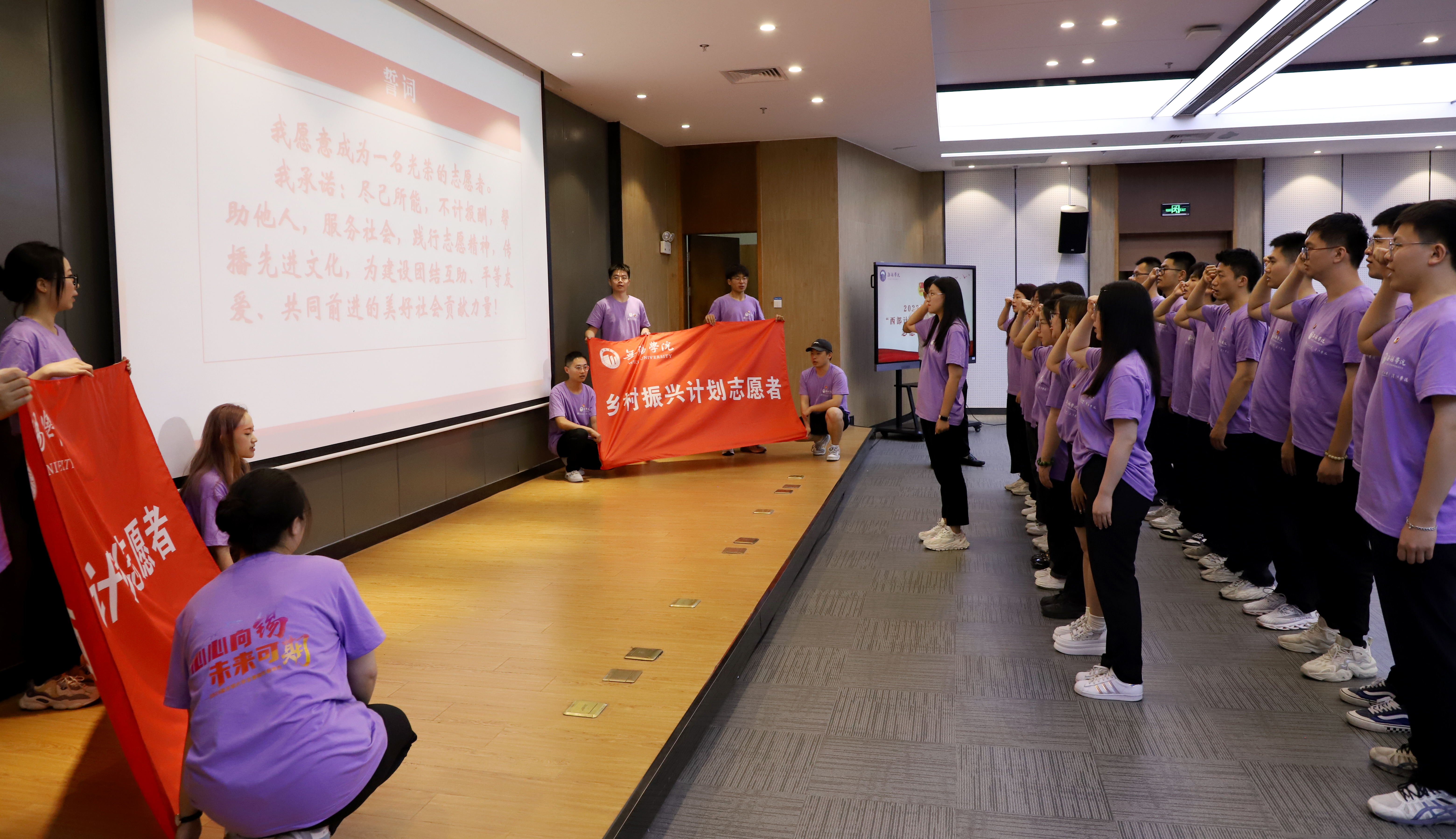 全体志愿者面向队旗庄严宣誓,用铮铮誓言表达了自己扎根基层、立足岗位、成就事业的信心决心。