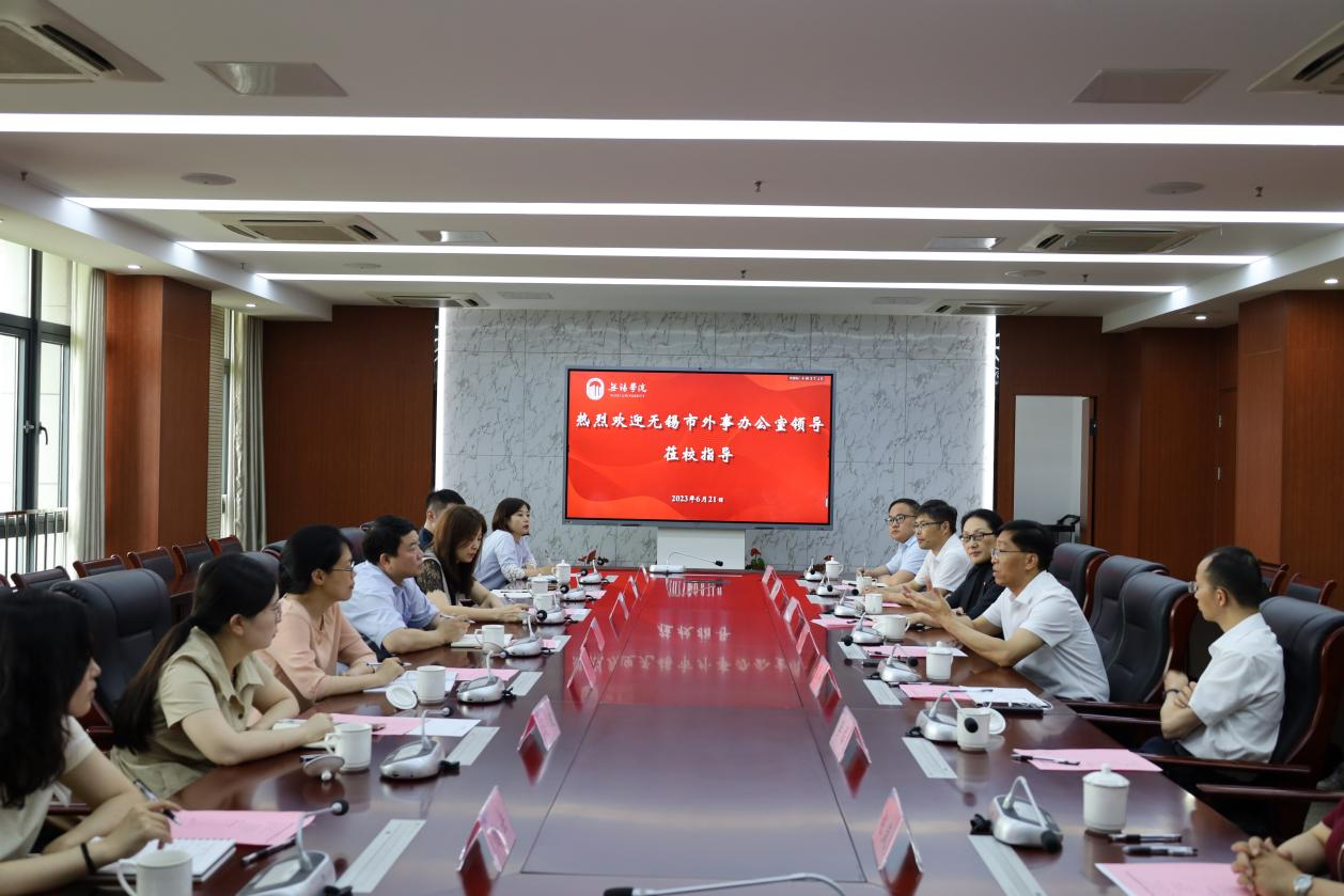 6月21日下午,无锡市外事办公室主任詹熠一行7人来校调研交流,校长张永宏,党委副书记匡辉,党委常委、副校长梁惠娥及相关职能部门、二级学院负责人参加会议,会议由梁惠娥主持。