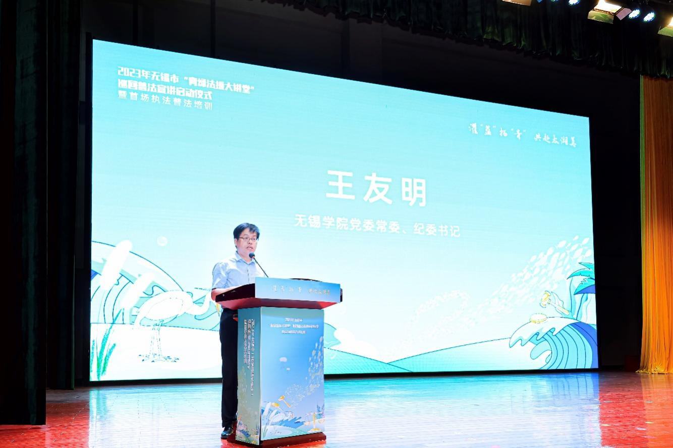 王海明表示,青绿法援大讲堂的普法宣讲活动是保障企业绿色发展、强化企业主体责任的重要举措。无锡市生态环境执法实战实训基地的成立让校地双方在“双向奔赴”中实现“彼此成就”,希望以后在合作中能够更好地展现新时代工商名城风采,呈现“太湖明珠”之美。