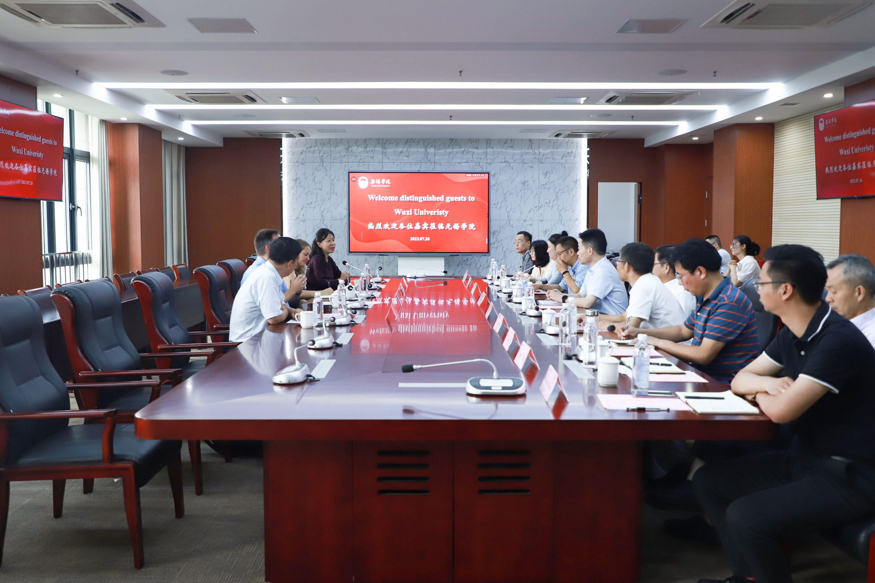 7月26日上午,德国泽佩林大学校长Klaus Muelhahn,Finiens公司董事长、无锡市教育局领导等一行6人访问我校,校党委书记杨建新,校党委常委、纪委书记王友明、教务处、学生工作处、国际合作与交流处、数字经济与管理学院和传媒与艺术学院等相关单位负责人出席会议。