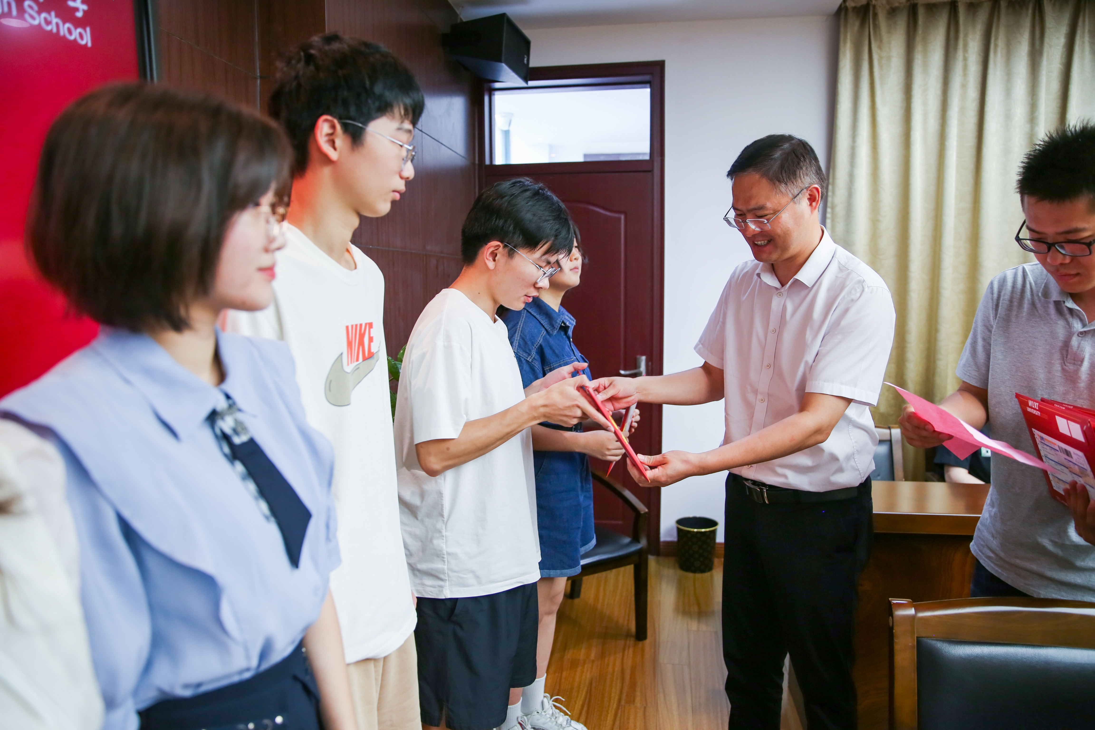 无锡学院录取工作正有序进行中,截至目前,第一批录取通知书已经准备完毕。为让新生第一时间体验收到录取通知书的喜悦,7月31日,校党委书记杨建新,副校长左同宇率队赶赴南通、无锡两地,亲自为2023级部分本科新生颁发录取通知书。学生工作处处长张灿龙等人陪同前往。