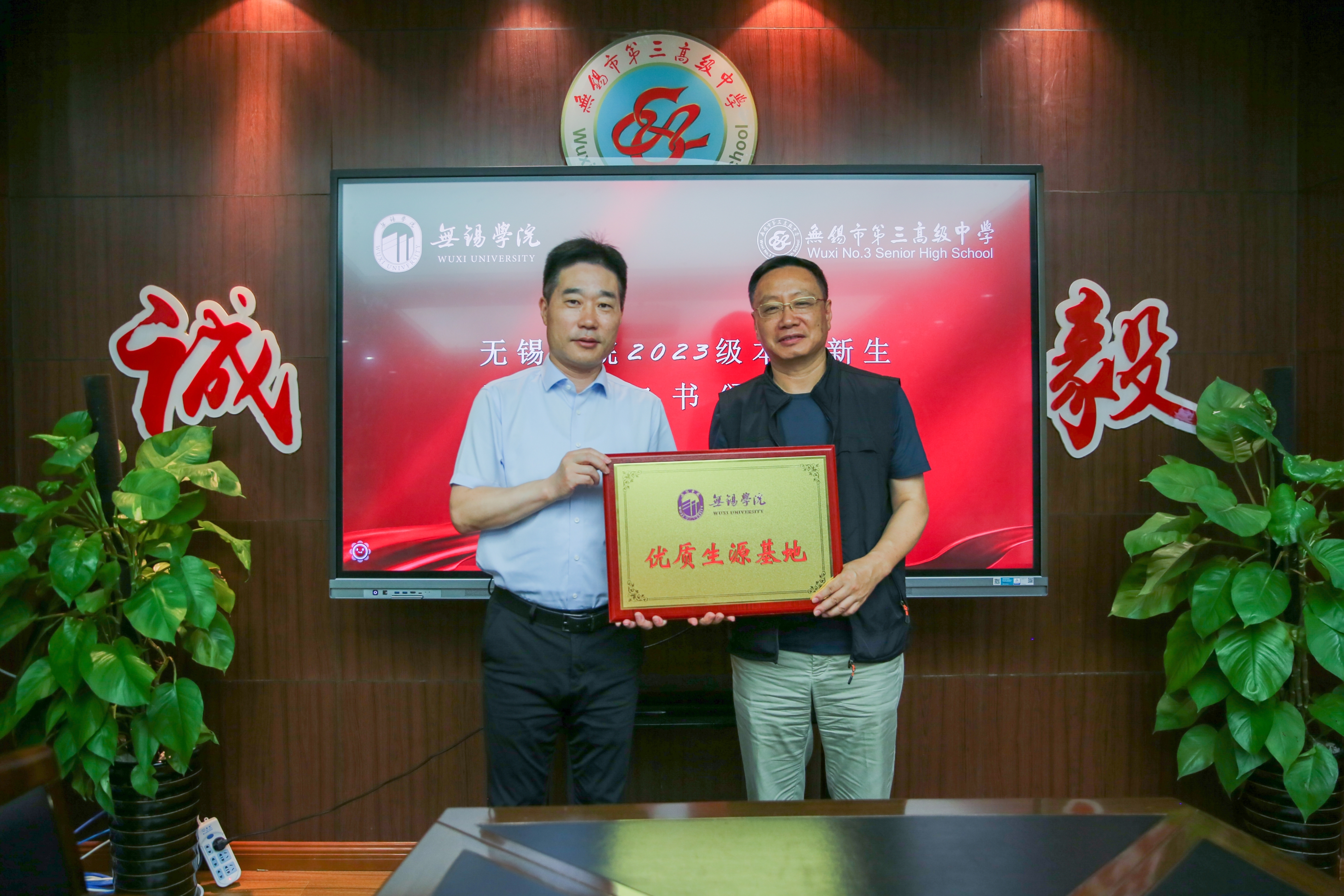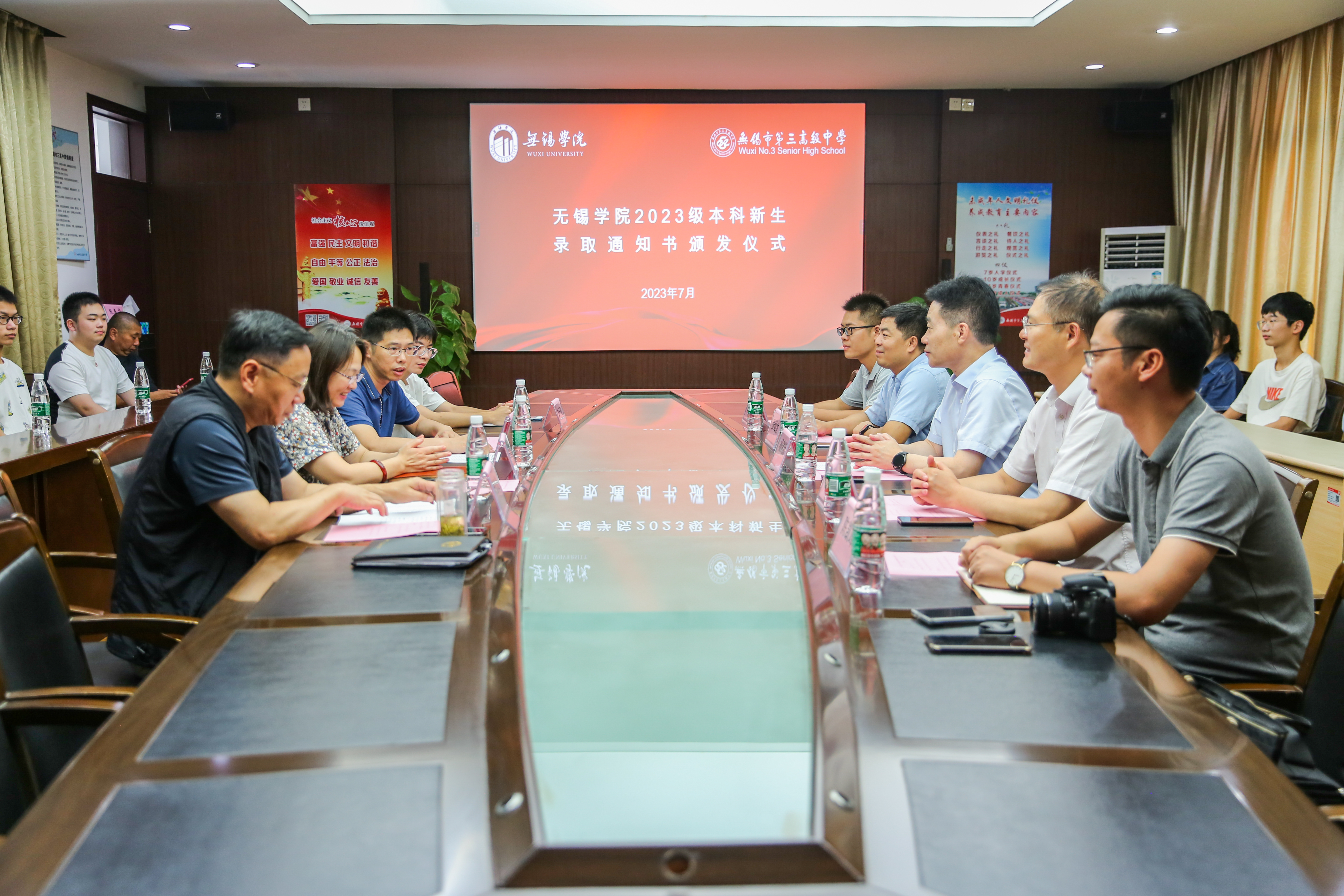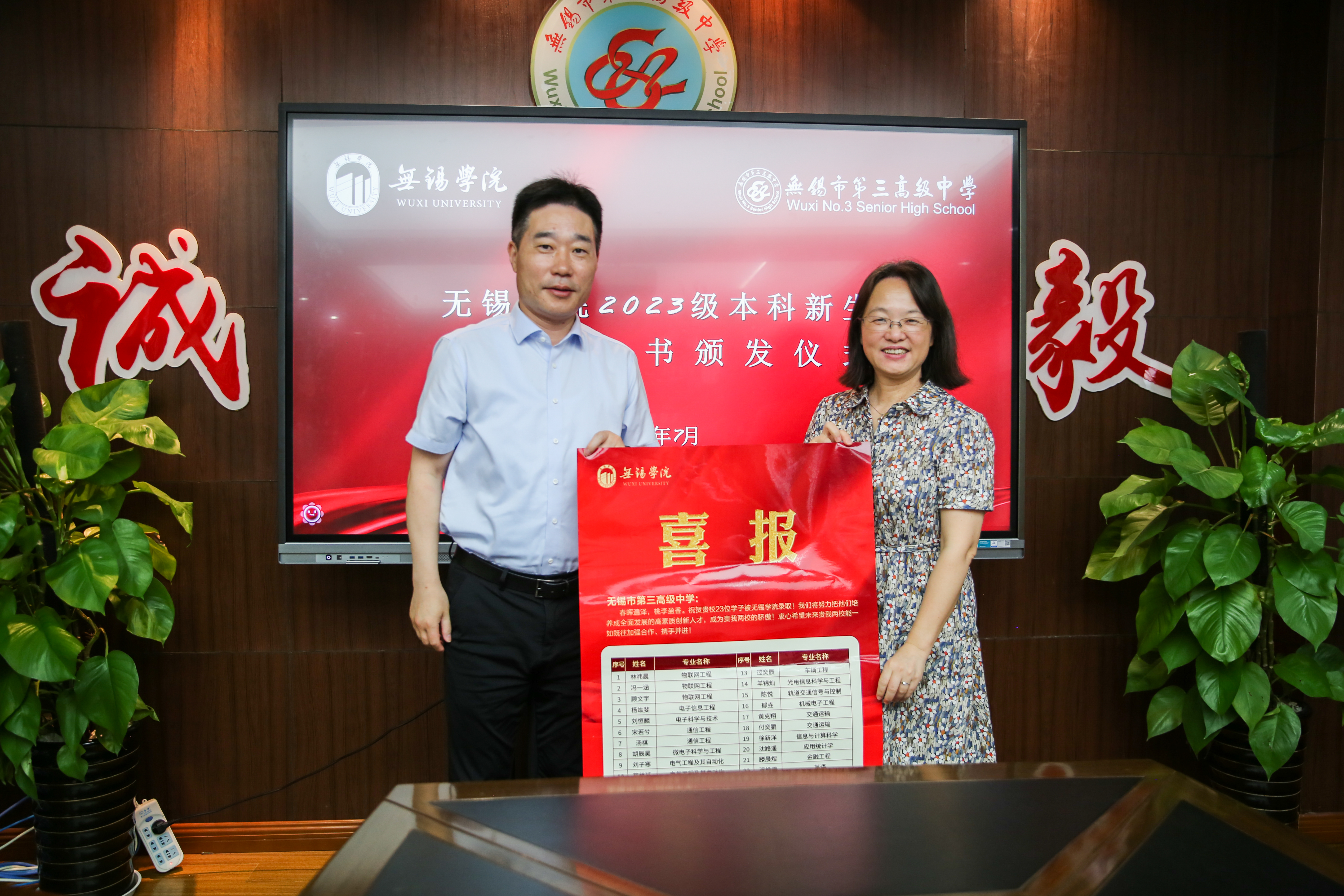 当天,杨建新一行还赴无锡市第三高级中学,举行2023级新生录取通知书颁发仪式,受到了无锡市第三高级中学校领导、老师及新生代表的热烈欢迎。