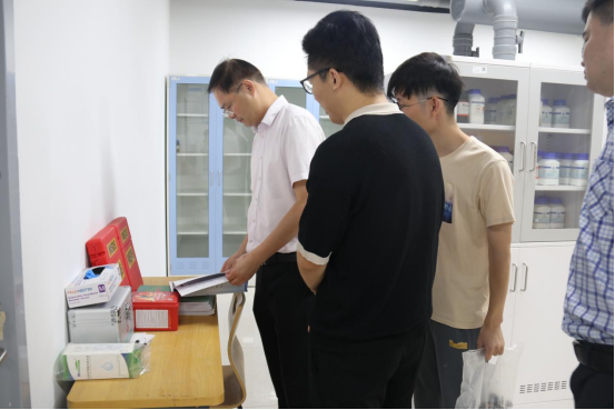 左同宇一行先后来到梅园1号宿舍、环境工程学院实验室、桃园食堂、华联商超等地,就消防安全、校舍安全、实验室安全、食品安全、用电安全等内容进行全面检查,重点查看开学前各部门准备情况,针对检查发现的问题,现场给与针对性的指导。