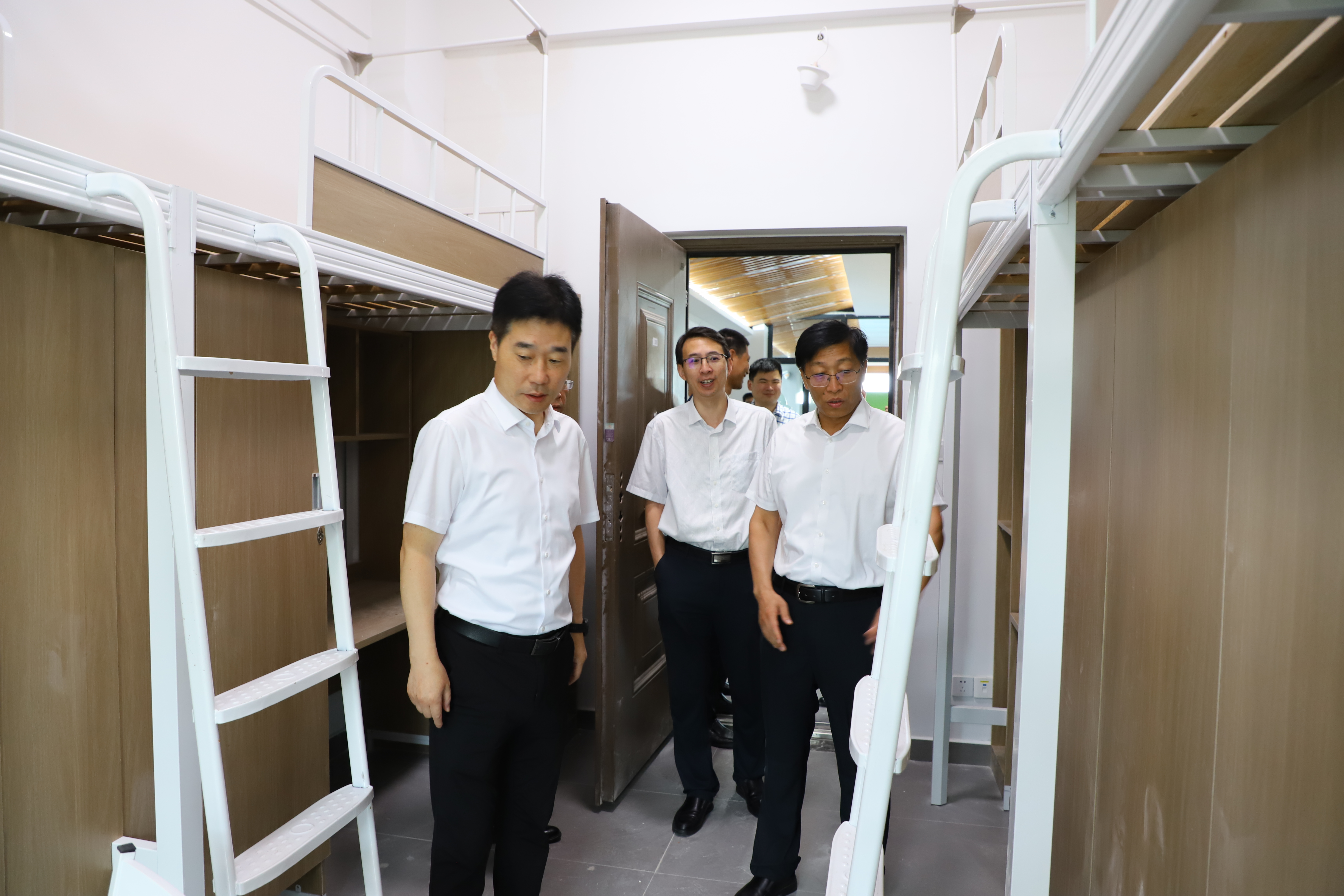 校领导一行围绕学生报到准备措施落实、消防安全、食品安全、设施设备安全、校园治安管控等方面,深入新建学生宿舍楼、环工院危化品实验室、教学区教室、图书馆、桃园食堂、老生宿舍、监控中心、录播中心等校园重点部位进行全面细致的检查,深度摸排校园安全隐患,并对存在的细节问题当场告知相关负责人进行整改。