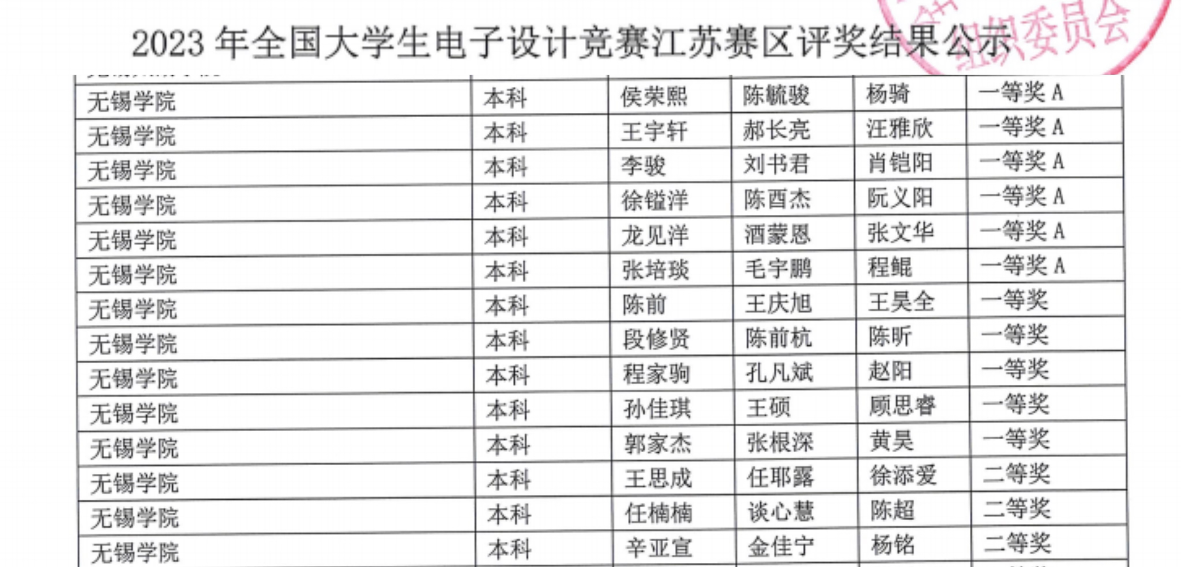 2023年全国大学生电子设计竞赛获江苏省级奖名单