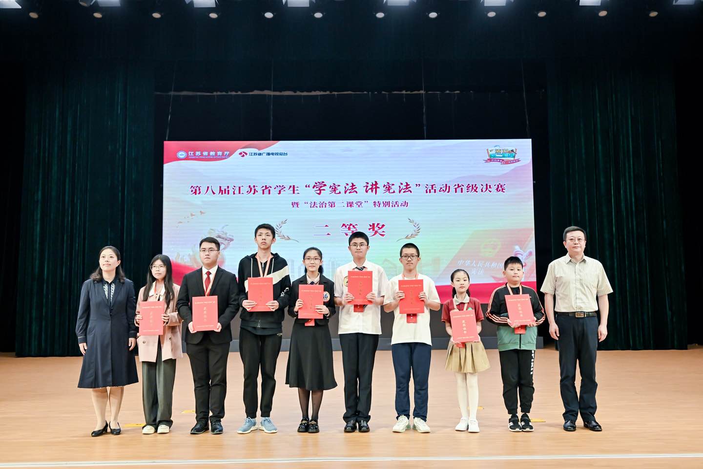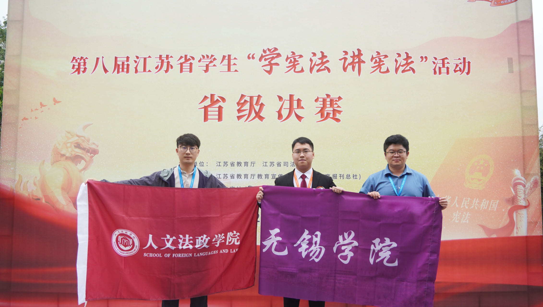 9月24日,由江苏省教育厅、江苏省司法厅主办的第八届“学宪法 讲宪法”活动省级决赛在南京审计大学举办。经过激烈角逐,我校人文法政学院林昊泽同学位列第九名,获省赛二等奖,法律系主任高峰老师获“优秀指导老师”称号。