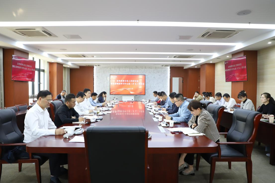 10月11日下午,我校在行政楼327会议室召开宣传思想文化工作研讨会暨党委理论学习中心组(扩大)学习会,全体在校校领导出席会议,相关职能部门、二级学院负责人、教师代表和辅导员代表参加会议。会议由校党委书记杨建新主持。