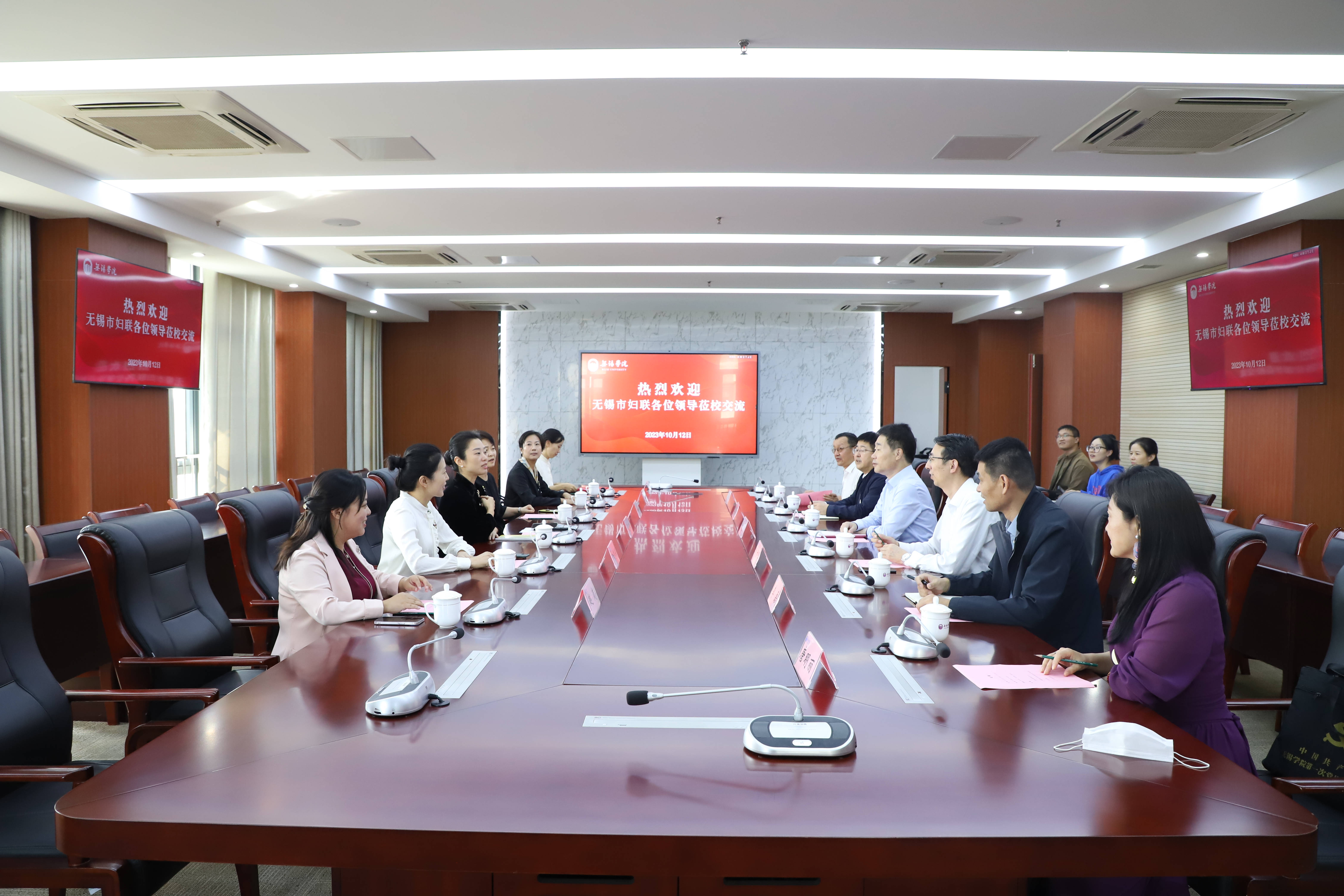 杨建新代表学校对夏琰一行的到来表示热烈欢迎,对无锡市妇联一直以来对学校妇女工作的支持表示衷心感谢,并围绕学校的办学沿革、学科建设、产教融合、人才培养和女教职工基本情况等作了简要介绍。他表示,推动学校内涵式高质量发展离不开广大女性教育工作者的努力和奉献,学校党委高度重视妇女工作,始终团结凝聚学校广大女教职工和女大学生以改革创新精神推动学校各项事业高质量发展。他希望双方在女性师生的思想政治教育、个人发展、健康关怀和创新创业等方面开展全方位深度交流与合作,共同为无锡市妇女事业高质量发展作出贡献。