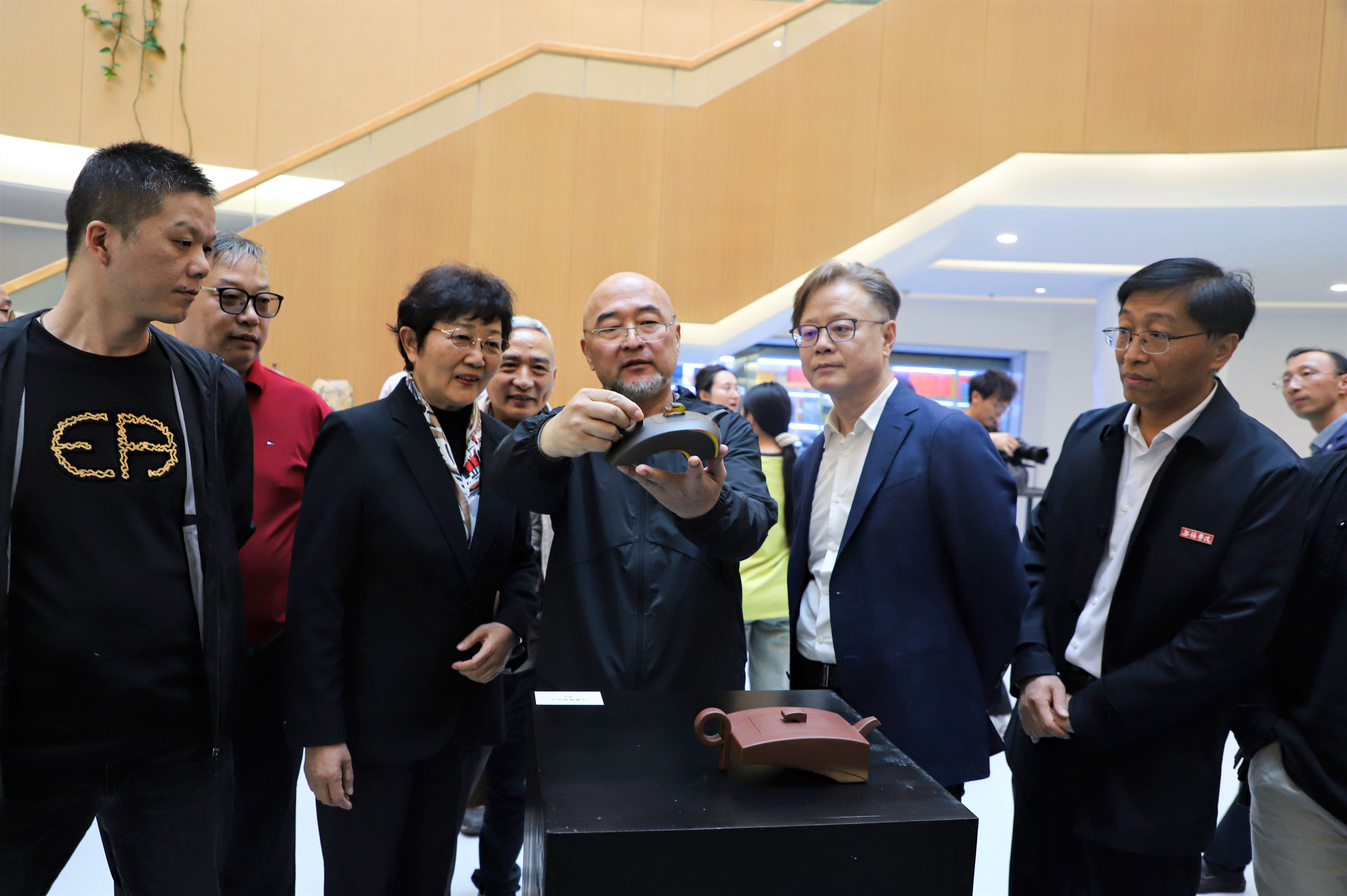 丹桂飘香,艺术芳香又起。10月20日,由中国世界民族文化交流促进会主办、我校承办的首届“中国名陶”邀请展拉开帷幕。来自北京、上海、南京、广州、浙江和台湾等地参展艺术家代表、媒体代表、无锡学院师生代表150余人参加了开幕式、观展和研讨会活动。