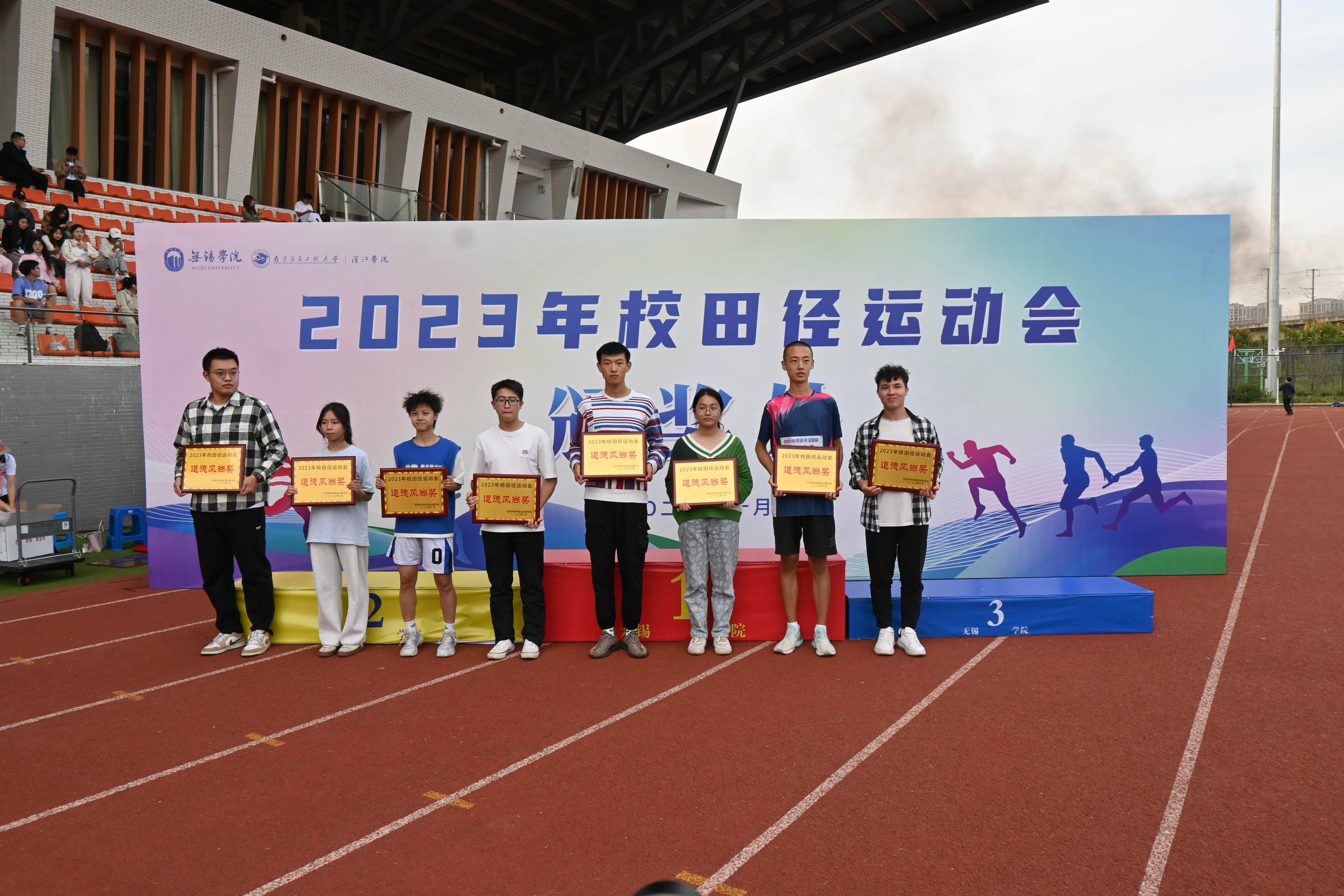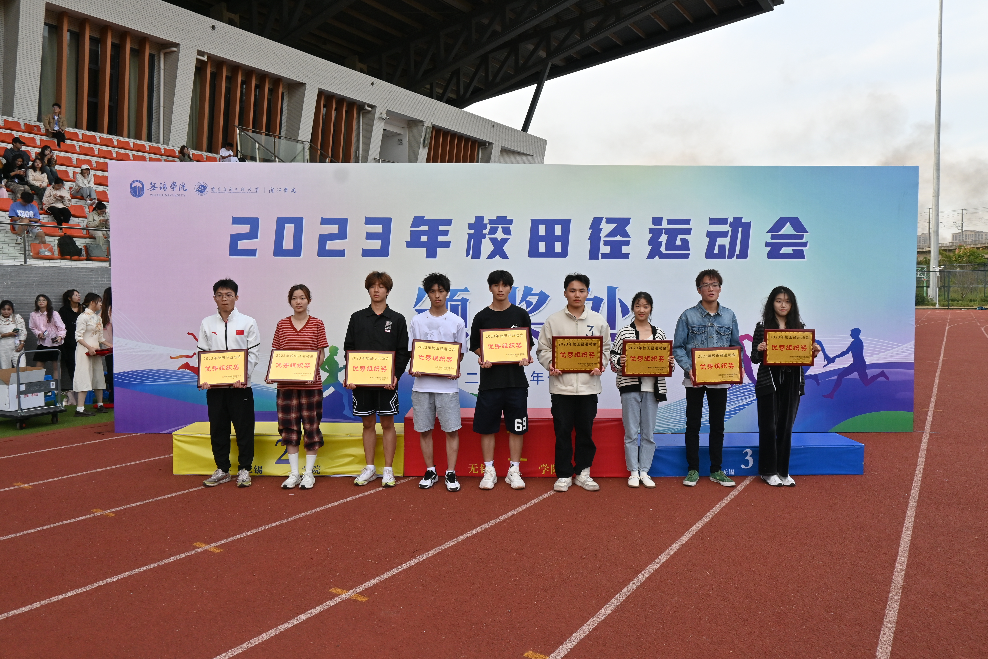 经过两天的激烈角逐,10月27日下午,我校2023年田径运动会圆满落幕。纪委书记王友明致闭幕辞。物联网工程学院、电子信息工程学院、自动化学院分获男子团体总分前三名;大气与遥感学院、数字经济与管理学院、物联网工程学院分获女子团体总分前三名;物联网工程学院、自动化学院、大气与遥感学院分获混合团体总分前三名;物联网工程学院等9个二级学院获“优秀组织奖”;电子信息工程学院等8个二级学院获“体育道德风尚奖”。