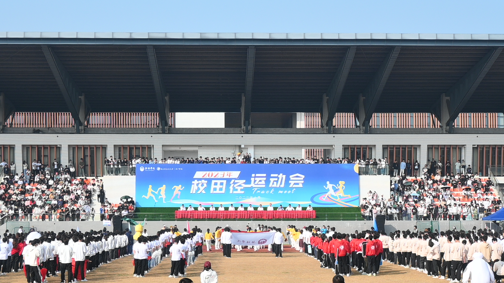 10月26日,我校2023年田径运动会在主田径场开幕。校领导杨建新、张永宏、曹广喜、王友明、胡剑凌、左同宇、徐军海出席开幕式,相关职能部门负责人、二级学院党总支负责人和3000余名师生代表参加活动。开幕式由曹广喜主持。