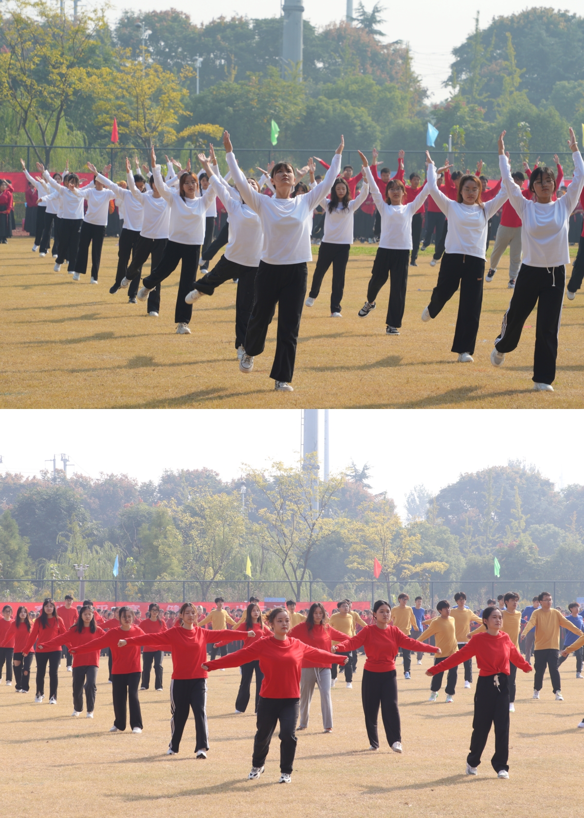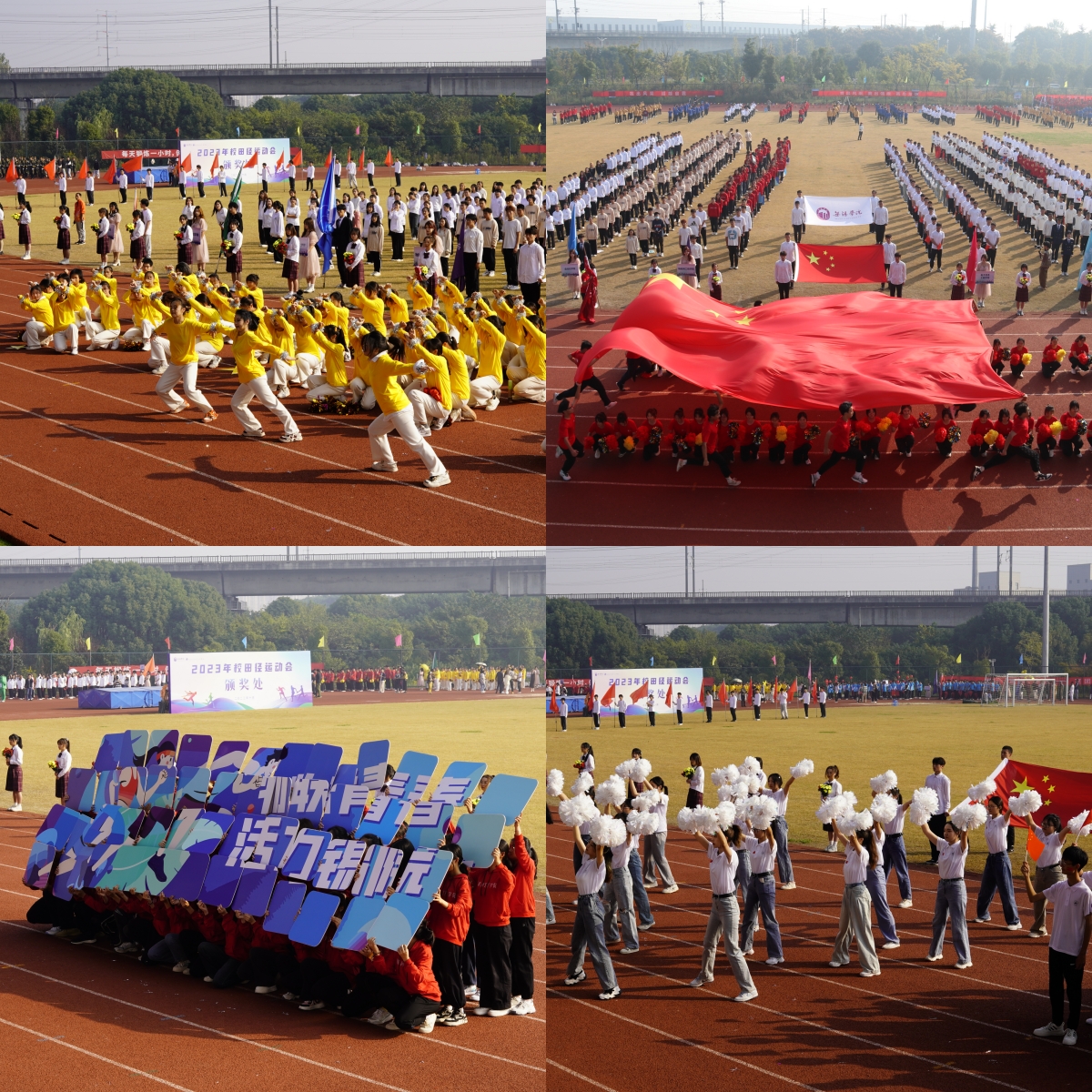 本次运动会吸引了全校师生广泛参与,短跑、接力、跳远、跳高、实心球、力者荣耀……赛场上,运动员们挥洒汗水、奋勇争先、挑战自我、突破极限,尽显力量与风采。1200余名学生代表还带来了广播体操和团体操表演。
