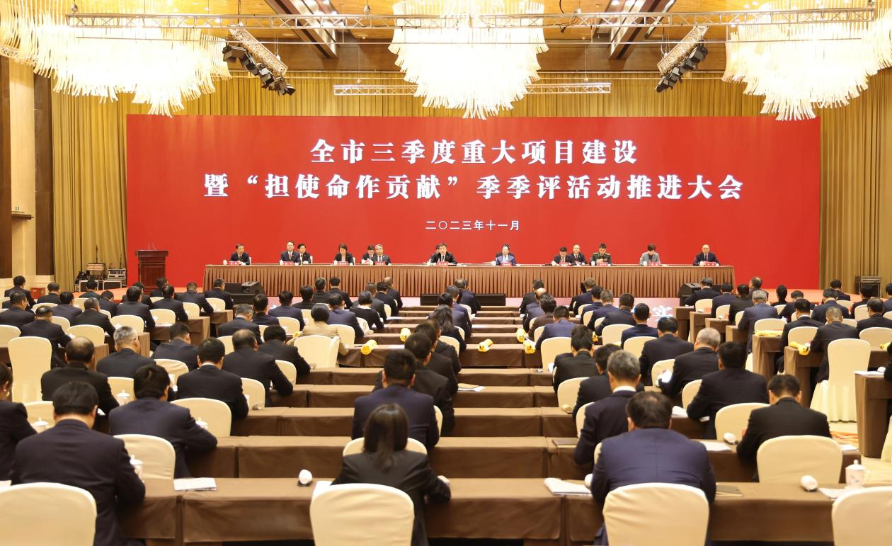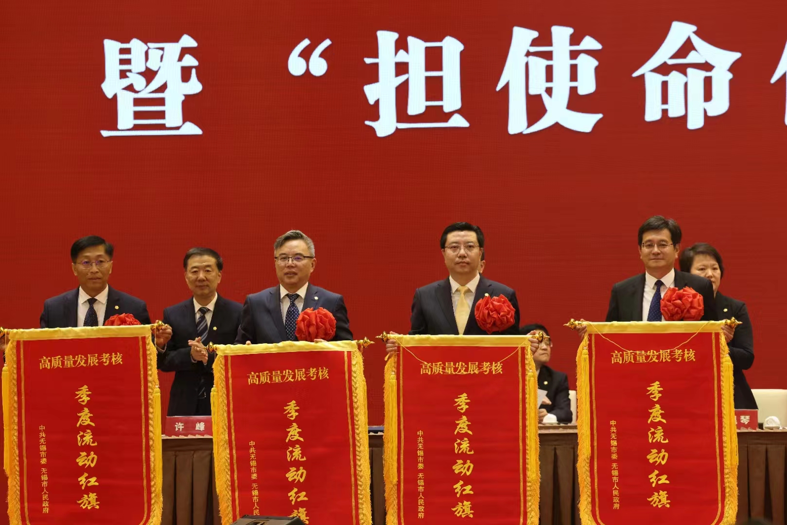 11月9日下午,无锡市委市政府举行全市三季度重大项目建设暨“担使命作贡献”季季评活动推进大会。市委书记杜小刚出席并讲话。省委第三巡回督导组组长焦建俊、市政协主席项雪龙出席。市委副书记、秘书长陆志坚宣读三季度“担使命作贡献”季季评结果,市委常委、常务副市长蒋敏主持会议。我校荣获“高质量发展考核季度流动红旗”。校长张永宏代表学校接受锦旗并作交流发言。