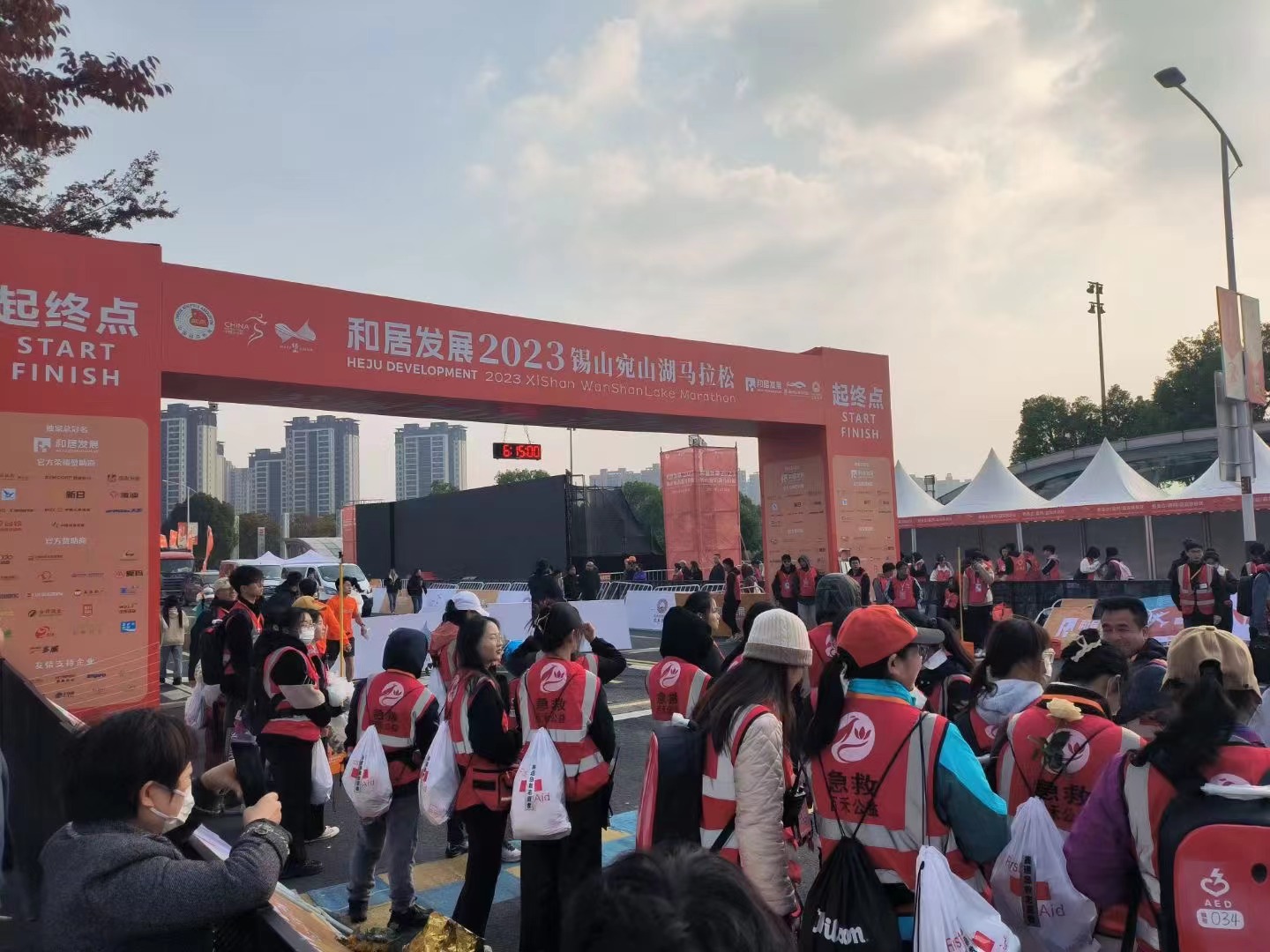11月12日清晨,2023年锡山宛山湖马拉松在映月湖中央公园起点处鸣枪开跑,我校选派2500名学生志愿者在现场服务。我校志愿者们分为物资发放组、引导组、检录组、计时组、人墙组、巡逻组、补给组、加油助威组、收容组、医疗组等32个组别,分布在42.195公里的宛马赛道上,为赛事提供各项服务保障工作。志愿者们全情投入、真诚付出,用贴心、耐心、细心的高质量服务让全国乃至世界各地的跑友暖心、舒心、开心,呈递了无锡学院的“最美名片”,赢得了组委会、跑友、媒体等广泛赞誉。