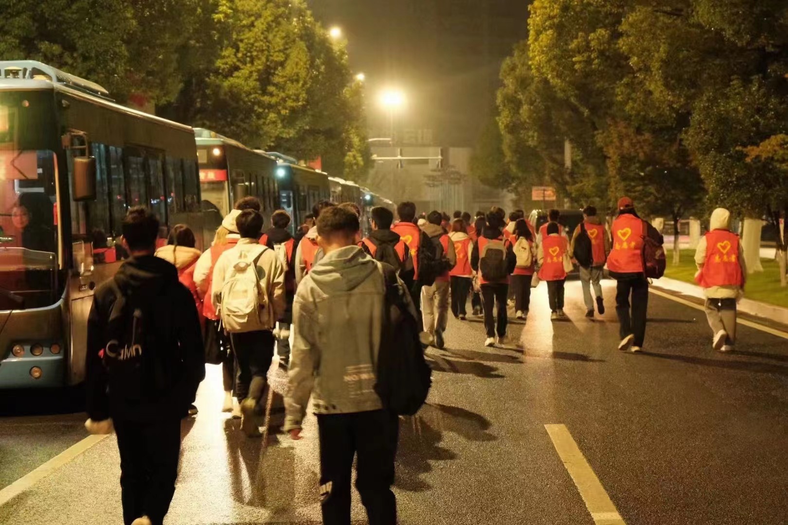 志愿者们凌晨4点整队出发