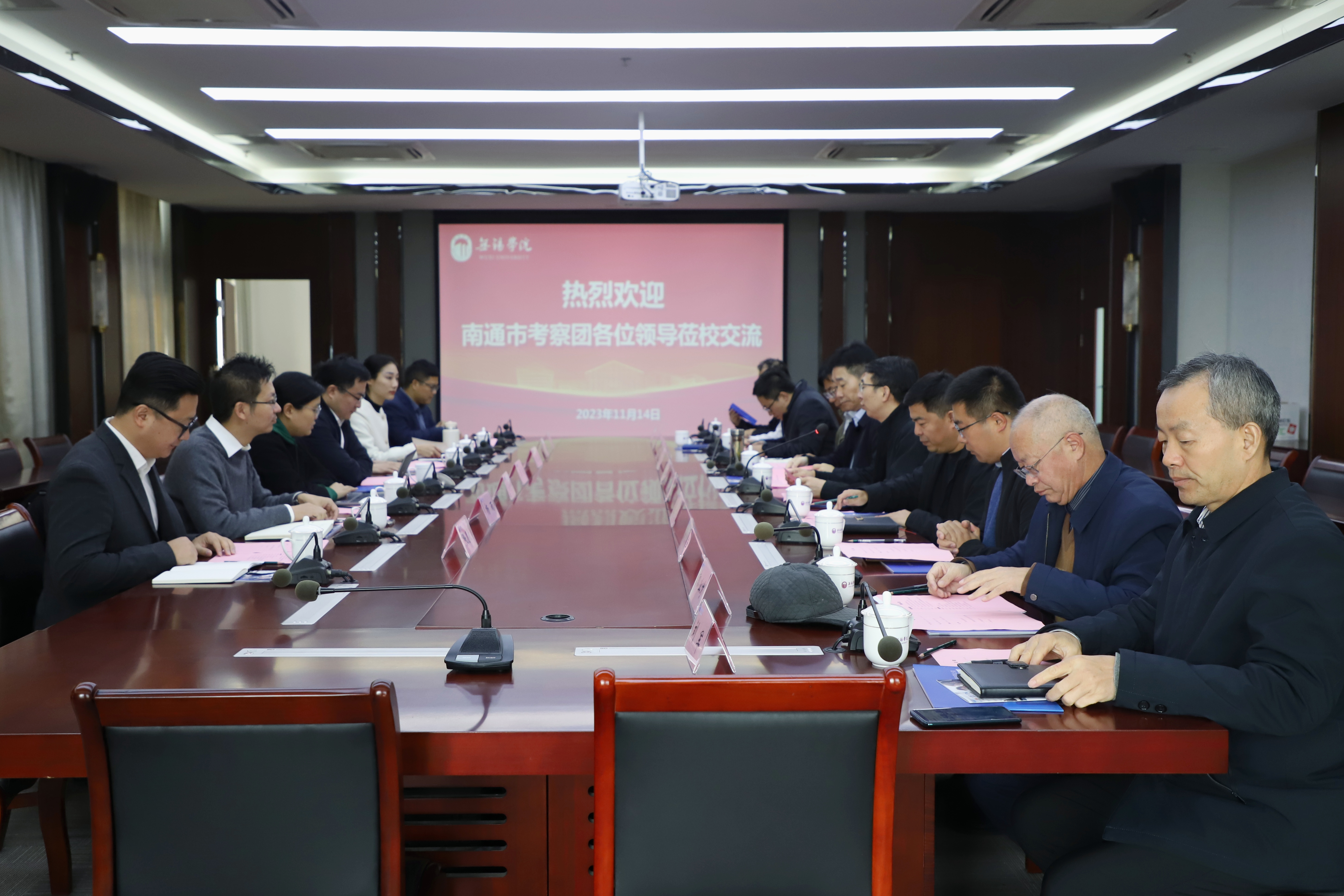 11月14日上午,南通人才发展集团董事长王晶、华为江苏政企南通业务部总经理赵磊一行7人来我校调研交流。党委书记杨建新、副校长曹广喜、相关职能部门及二级学院负责人出席会议,会议由副校长曹广喜主持。