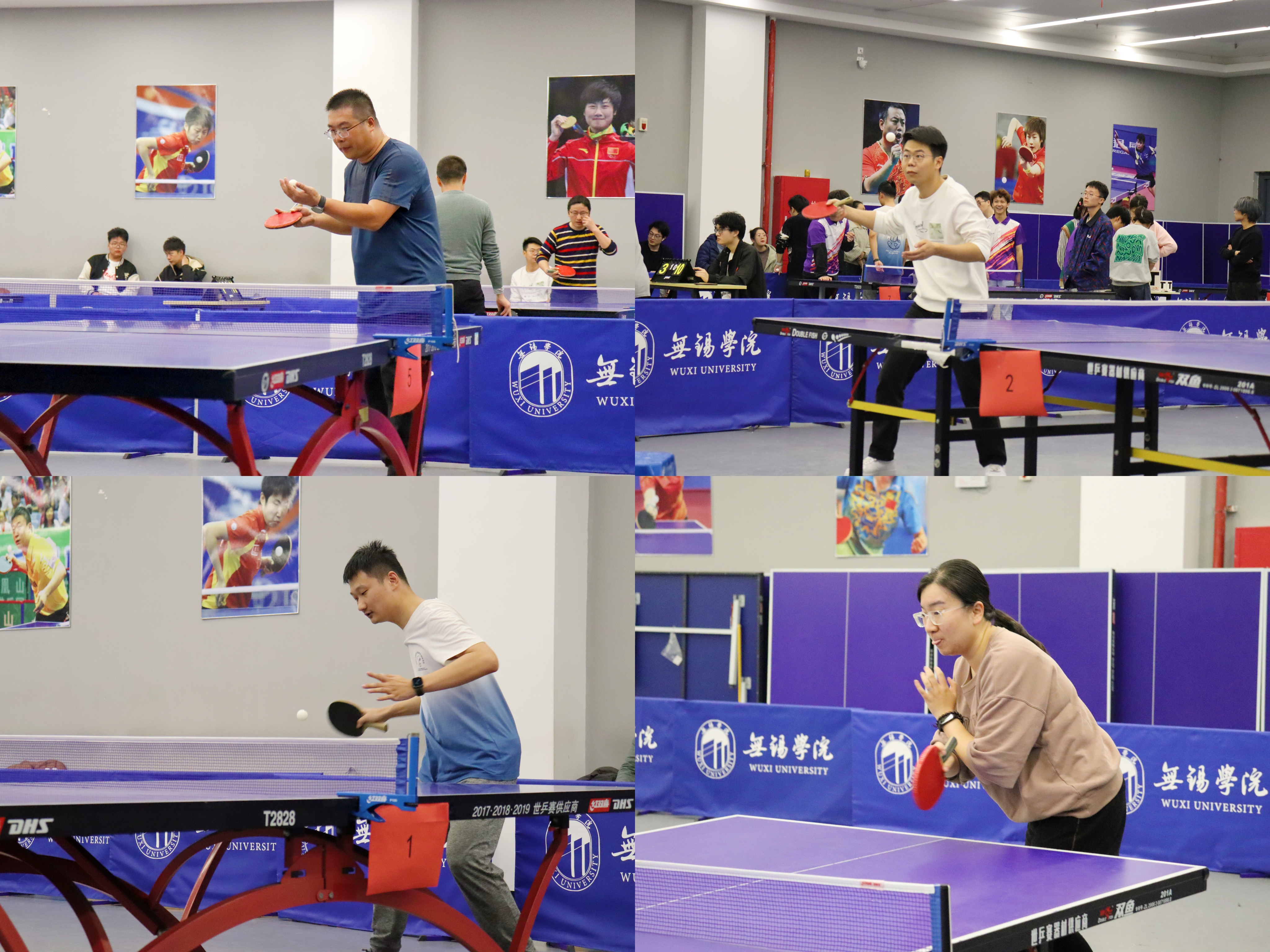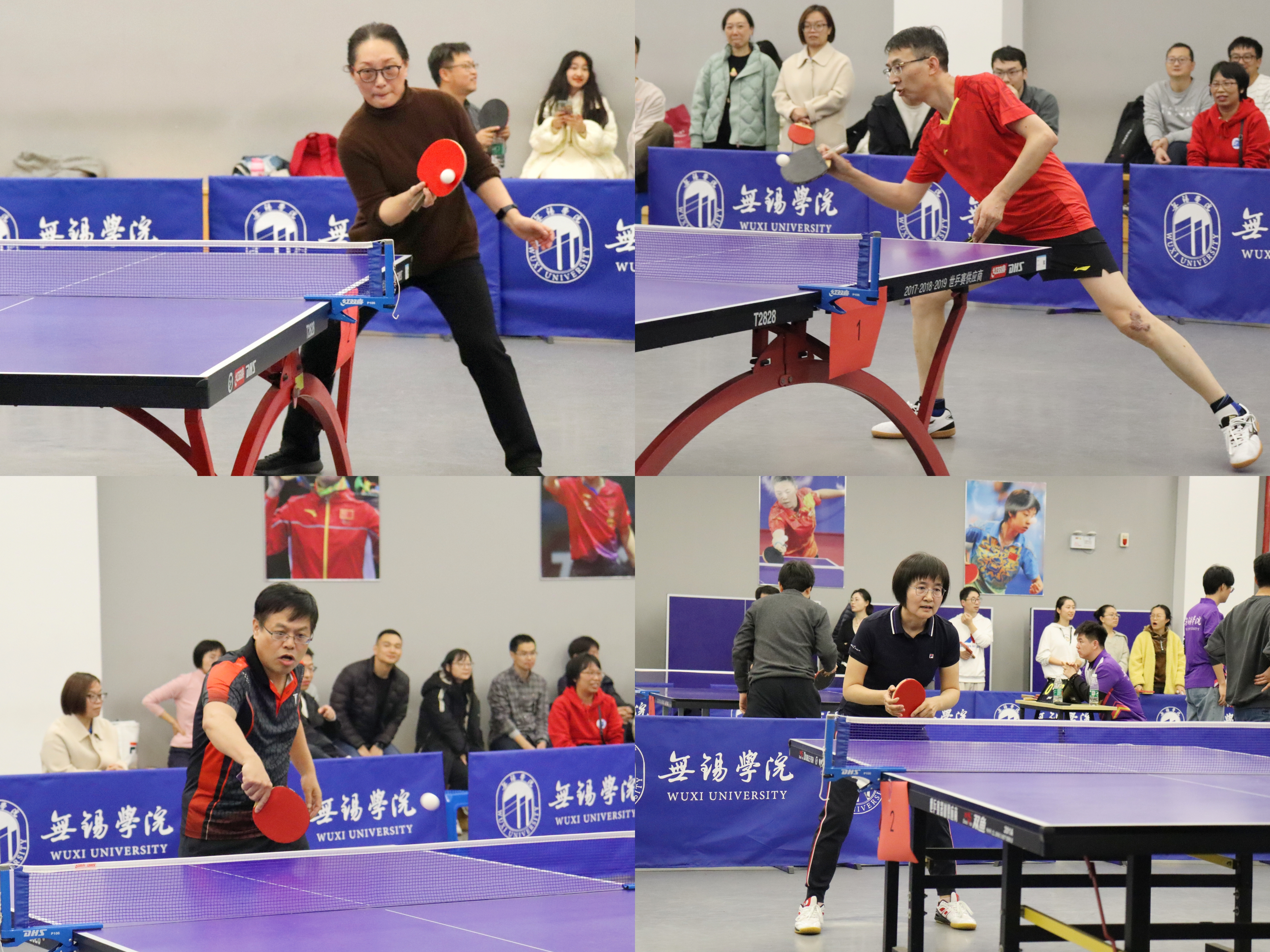 比赛现场,参赛队员们斗志昂扬、全力拼搏,不断发球抢攻、上步搓球,巧妙运用着旋转球、弧线球,精彩场面层出不穷,充分展现了老师们的高超球技。激烈的拼杀、胶着的比分牵动着现场观众的心弦,默契的配合也收获了观众们的热情欢呼。