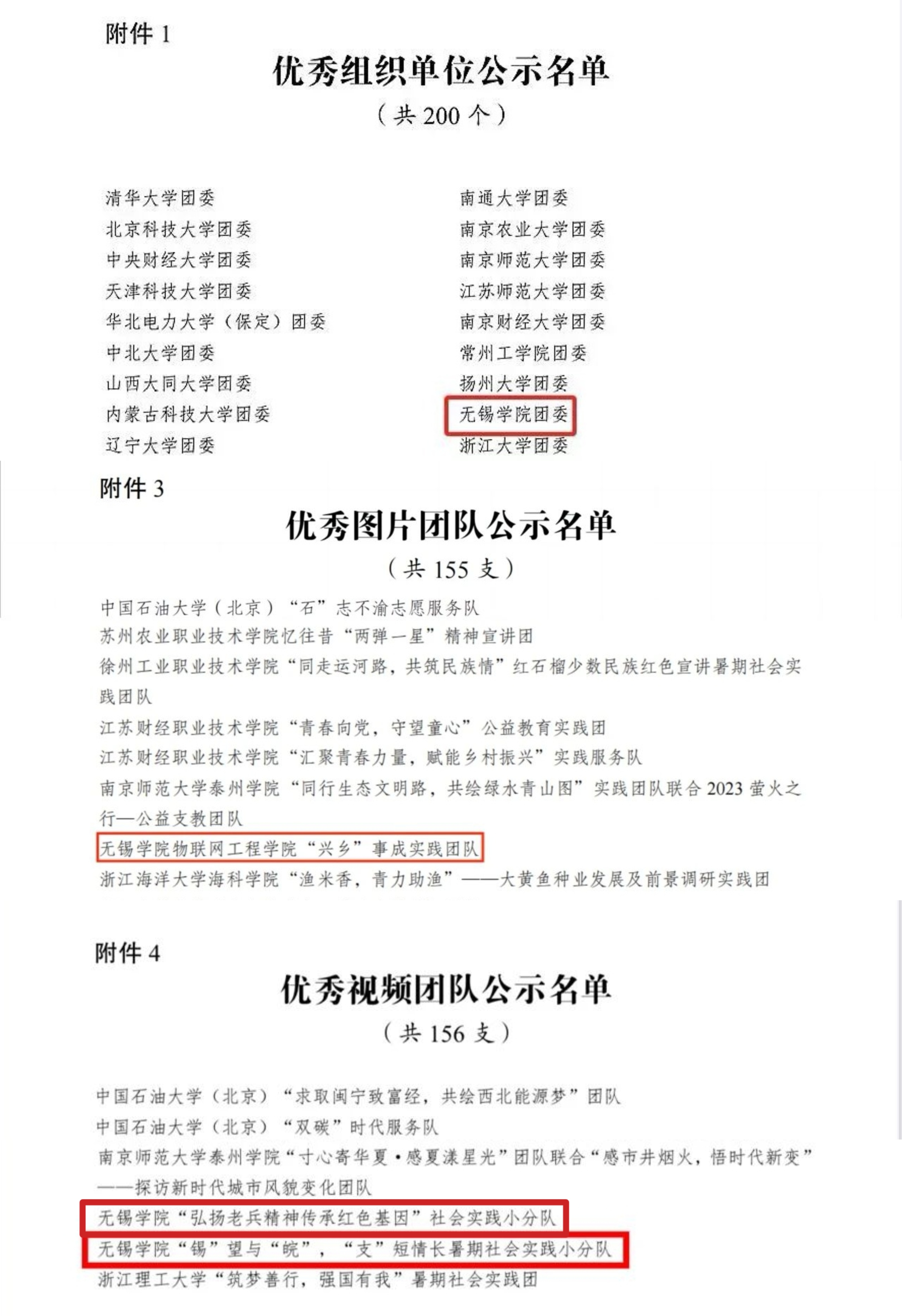 近日,由团中央青年发展部、中国青年报、中国青年网共同举办的2023年全国大中专学生志愿者暑期“三下乡”社会实践“镜头中的三下乡”优秀成果遴选活动结果公布。我校团委荣获“优秀组织单位”称号、物联网工程学院“兴乡事成”实践团队获得“优秀图片团队”、自动化学院“弘扬老兵精神传承红色基因”实践团队、校红会“锡望与皖,支短情长”实践团队荣获“优秀视频团队”。