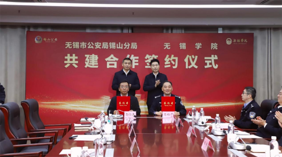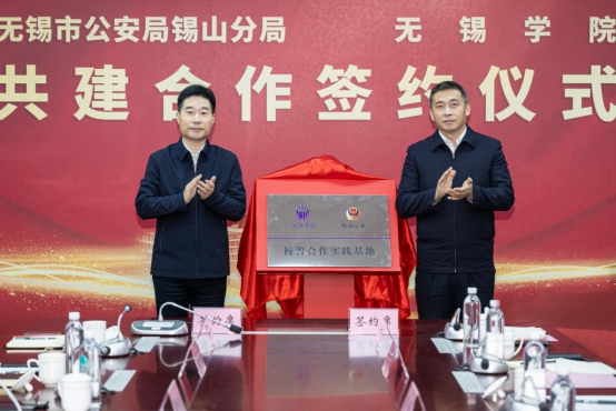 近日,我校与无锡市锡山公安分局校警共建合作签约仪式在行政楼327会议室举行。无锡市副市长、公安局局长张镇,校党委书记杨建新出席仪式并见证签约,共同为“校警合作实践基地”和新建成的校园警务室揭牌。副校长胡剑凌、市公安局相关部门负责同志、锡山公安分局主要领导及我校相关部门负责人参加活动。