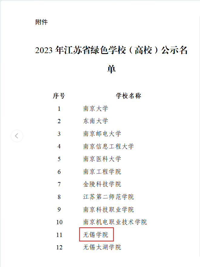 近日,江苏省教育厅下发《2023年江苏省绿色学校(高校)名单公示》,我校荣获“江苏省绿色学校”称号。这标志着我校在推动绿色发展、促进校园环境改善等方面取得了显著成果。