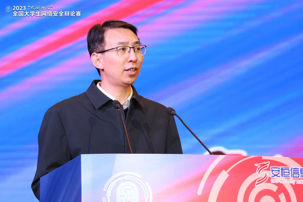 曹广喜代表学校向全体参赛选手、指导教师和评委专家表示热烈的欢迎。他表示,我校将以此次辩论赛为契机,继续深化校地、校际、校企合作,以合作谋发展、以发展谋共赢。深入推进“1+5”战略工程,充分发挥我校在人才培育、科技创新、政策研究等方面的优势,紧扣网络安全行业发展需求,与地方政府、行业企业进一步深化合作,为网络安全行业源源不断输送高素质应用型人才。