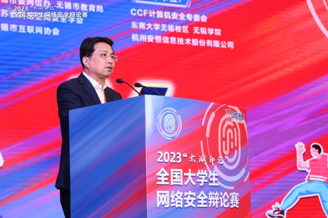 蔡文煜表示,无锡认真落实全国、全省网信工作会议部署要求,精准发力网络强市建设的关键环节,不断构建起政府、高校、企业等多主体共建、产业化导向、市场化运作的网信人才协同培养生态圈,希望在省委网信办、省教育厅的大力支持下,在国内各大知名高校网络安全学院、评委专家和优秀才俊的关心关注下,不断刷新擦亮网络安全辩论“太湖印记”品牌,让更多的青年人才在实现个人价值的同时,为推动网信事业高质量发展,网络强国建设作出更加卓越的贡献。