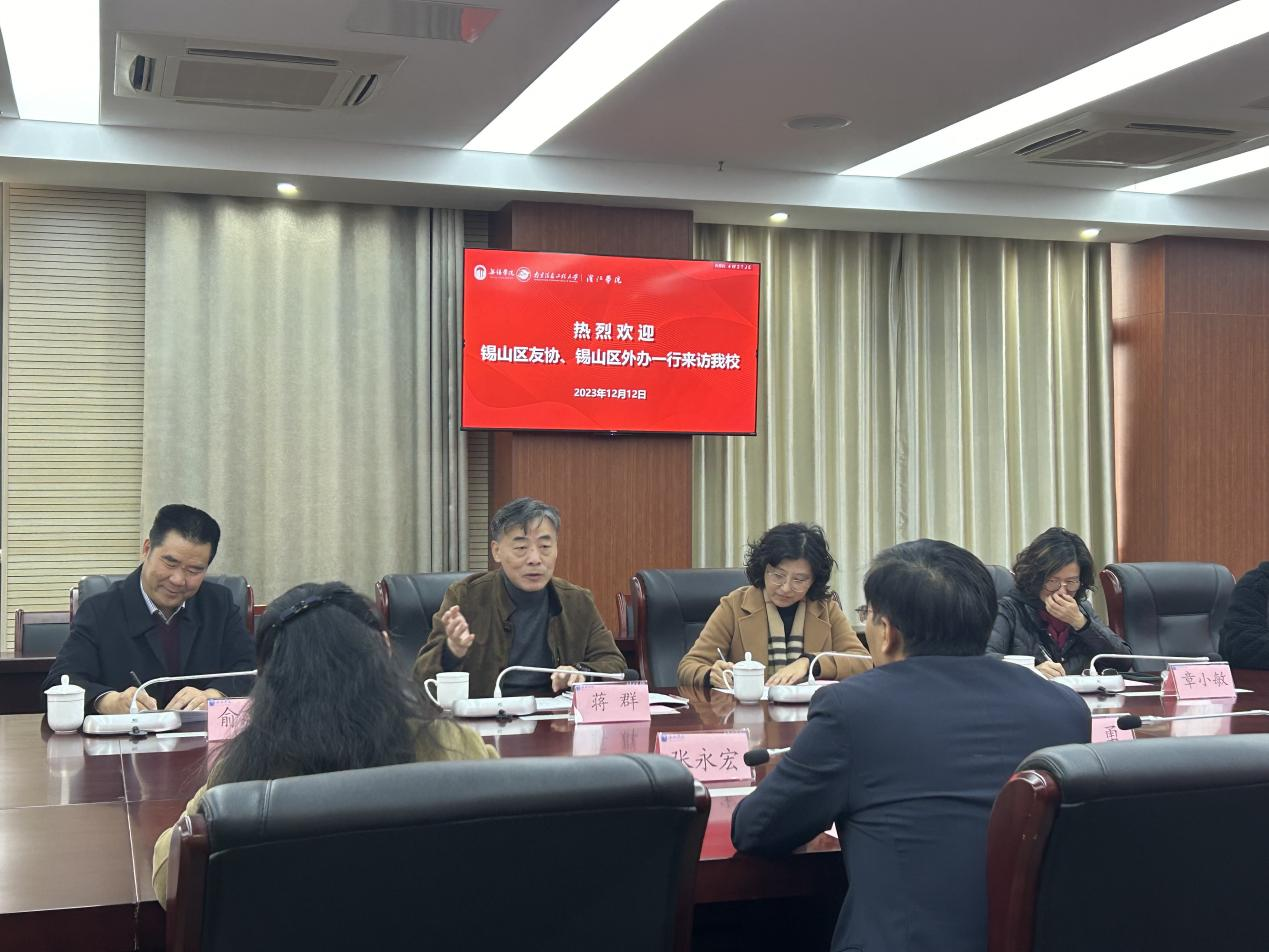 张永宏代表学校向锡山区友协、锡山区外办一行表示热烈欢迎,并对他们长期以来大力支持学校发展表示衷心感谢。他围绕学校办学历史、学科发展、产教融合、国际合作与交流、留学生培养等方面对学校进行了简要介绍。他表示,学校始终秉承“立足无锡,融入产业、面向区域、服务发展”的办学定位,深度融入“一带一路”建设,努力打造高质量的国际化交流平台。他希望以此次授牌为契机,全面加强对外合作与交流,不断探索无锡国际交流新渠道和新模式,搭建内外融合的平台载体,进一步提升学校和城市的国际影响力。