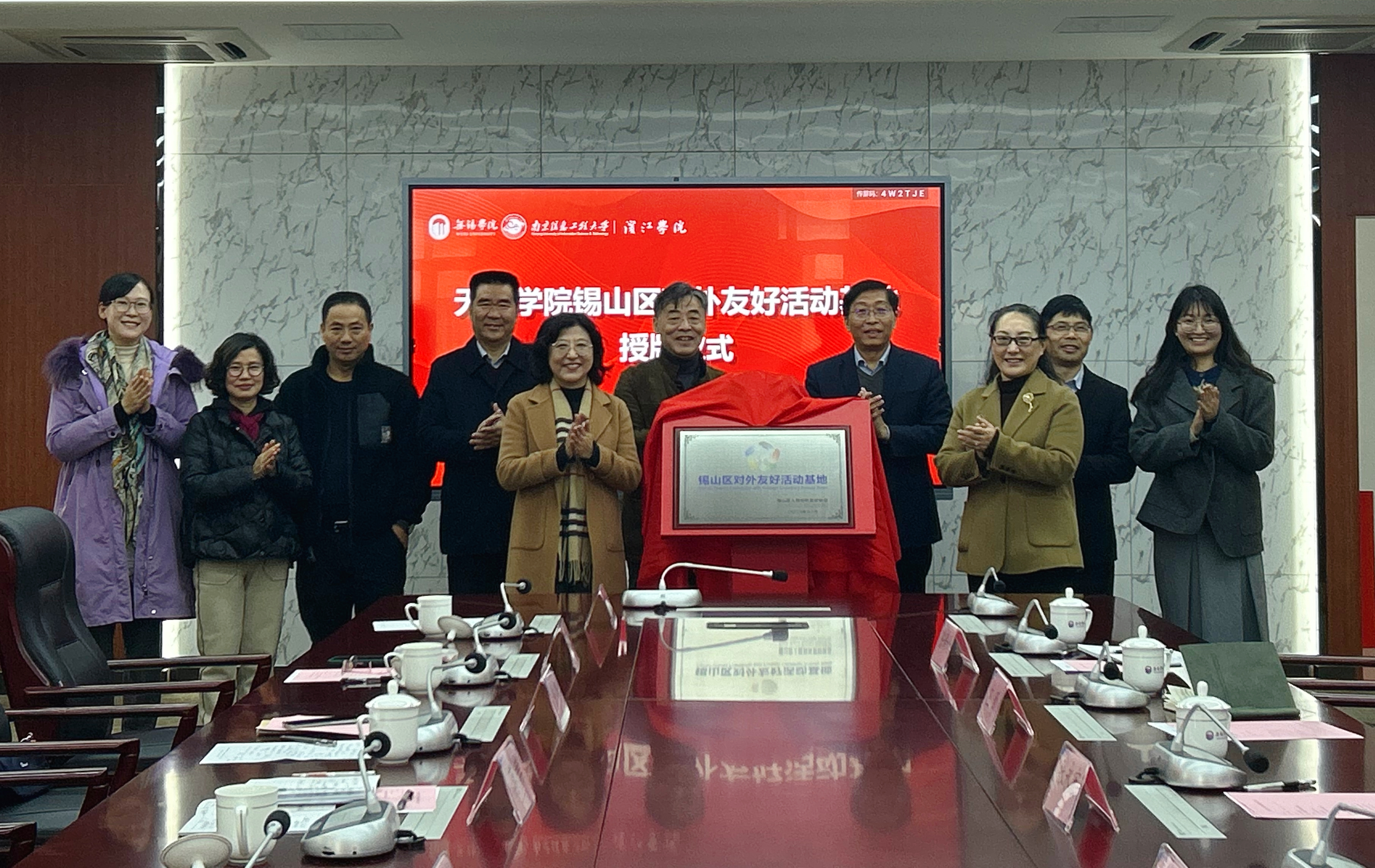 12月12日上午,锡山区对外友好协会会长蒋群一行6人来访我校。校长张永宏,副校长梁惠娥,国际合作与交流处处长王勇及相关工作人员出席仪式。授牌仪式由梁惠娥主持。