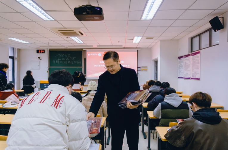 左同宇与考研学生亲切交流,询问学生的复习备考情况和生活保障等,并对同学们提出了三点期望:一是坚守本心,超越自我,考研路漫漫,不轻易放弃,努力取得一个好的结果;二是饮食合理,注意身体,及时补充营养来保持充沛的精力和体力;三是积极调整心态,正确看待考研,以乐观的精神去面对考试。同时,左同宇还表示,学校将一如既往地关心和支持考研学生的学习和生活,为大家提供必要的帮助和支持。随后,左同宇为同学们送上精心准备的考研加油包,祝同学们一“研”为定,一战成硕。