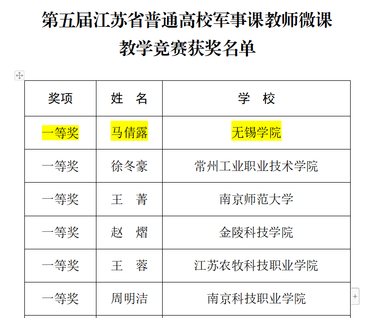 12月12日,由江苏省教育厅主办、江苏省普通高等学校军事课教学指导委员会承办的第五届江苏省普通高校军事课教师微课教学竞赛决赛在南京师范大学举办。经过决赛的激烈角逐,我校人民武装部老师马倩露以决赛第1名的成绩荣获一等奖。