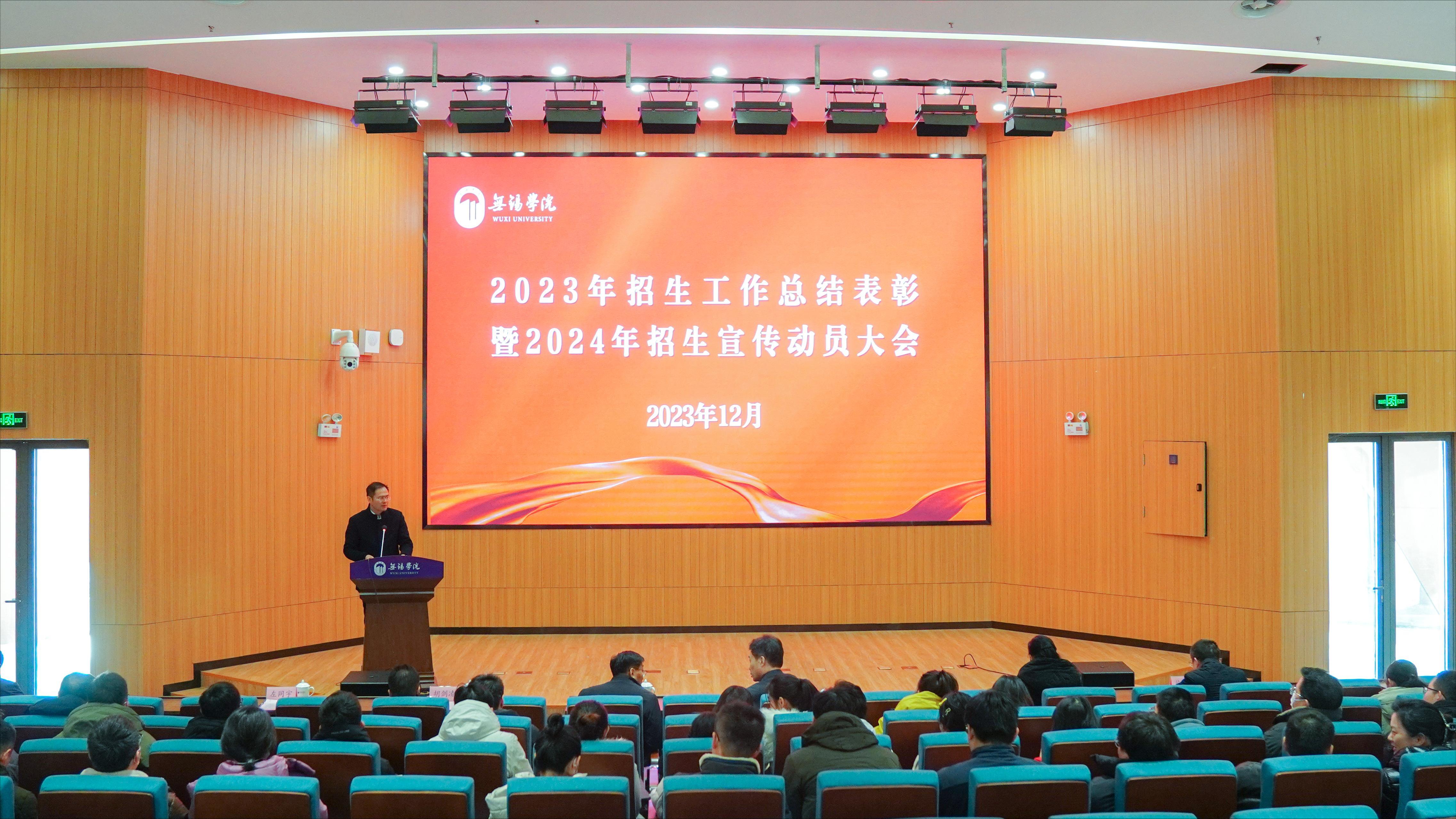 为认真总结我校2023年招生工作经验,表彰在招生宣传工作中表现突出的先进集体、先进个人,并对2024年招生宣传工作做动员和部署,12月20日上午,我校2023年招生工作总结表彰暨2024年招生宣传动员大会在图书馆报告厅举行。校党委书记杨建新,校长张永宏,副校长梁惠娥、胡剑凌、左同宇、徐军海出席会议,各二级学院院领导、全体辅导员及招生宣传骨干人员参加会议,会议由副校长左同宇主持。
