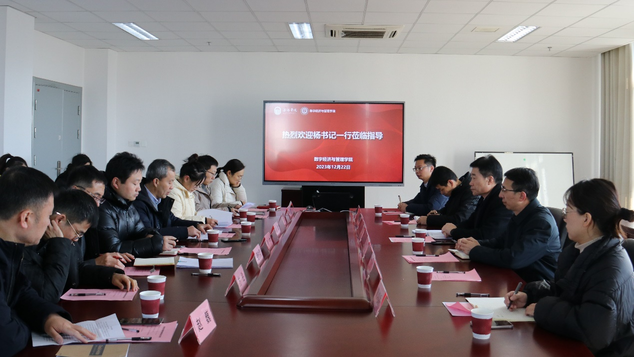 曹广喜听取了相关工作情况汇报,他指出,数字经济与管理学院要持续强化组织领导力,压实教学科研主体责任,明确学科建设重点,落实学校“十四五”发展建设要求,统筹推进学院各项工作有序开展。