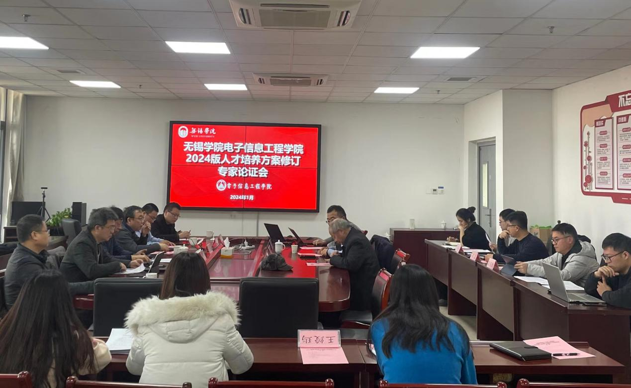 2024年1月12日下午,电子信息工程学院(以下简称电信院)在思贤楼512会议室召开2024版电子信息类专业人才培养方案修订专家指导会。邀请教育部电子信息类教指委委员—南京航空航天大学周建江教授、复旦大学胡波教授,上海交通大学方向忠教授、天津大学张涛教授,中国电子科技集团首席科学家于宗光教授、无锡市德科立光电子技术股份有限公司副总经理张劭、常熟理工学院张惠国教授、无锡市集成电路学会秘书长周德金莅临指导。我校副校长胡剑凌、电信院院长郭业才、副院长王伟以及电信院各专业负责人参加了会议。会议由郭业才主持。