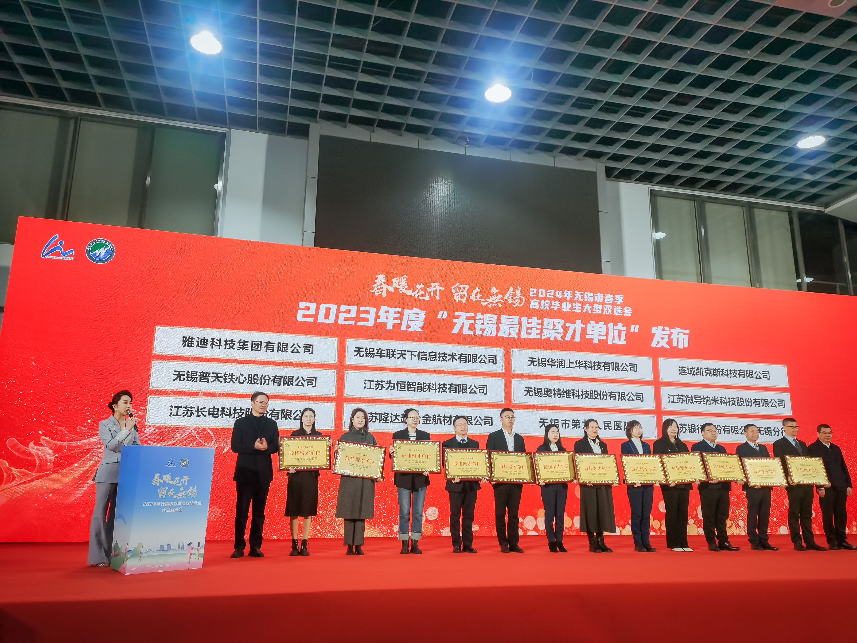 会前启动仪式上,左同宇为2023年度“无锡最佳聚才单位”授牌,并与部分就业单位洽谈,详细了解当前相关行业、企业的用人需求,向用人单位推荐我校毕业生,深化多领域校企合作,助力我校毕业生留锡就业创业。