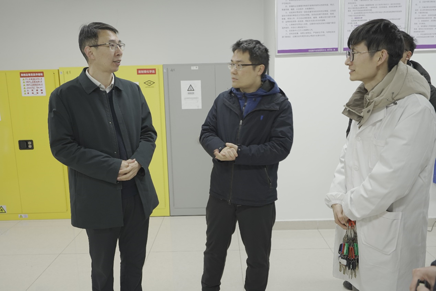 曹广喜一行深入各学院实验室,针对水电气、安全设施、危险化学品安全管理、特种设备安全管理、电气设备、危险废弃物、实验室环境卫生、消防设施配置和实验室工作档案等项目进行现场检查,重点排查了实验室危险化学品存储使用管理,对以往检查中发现安全隐患较多的实验室进行了重点检查,并对存在的安全隐患提出现场整改意见。