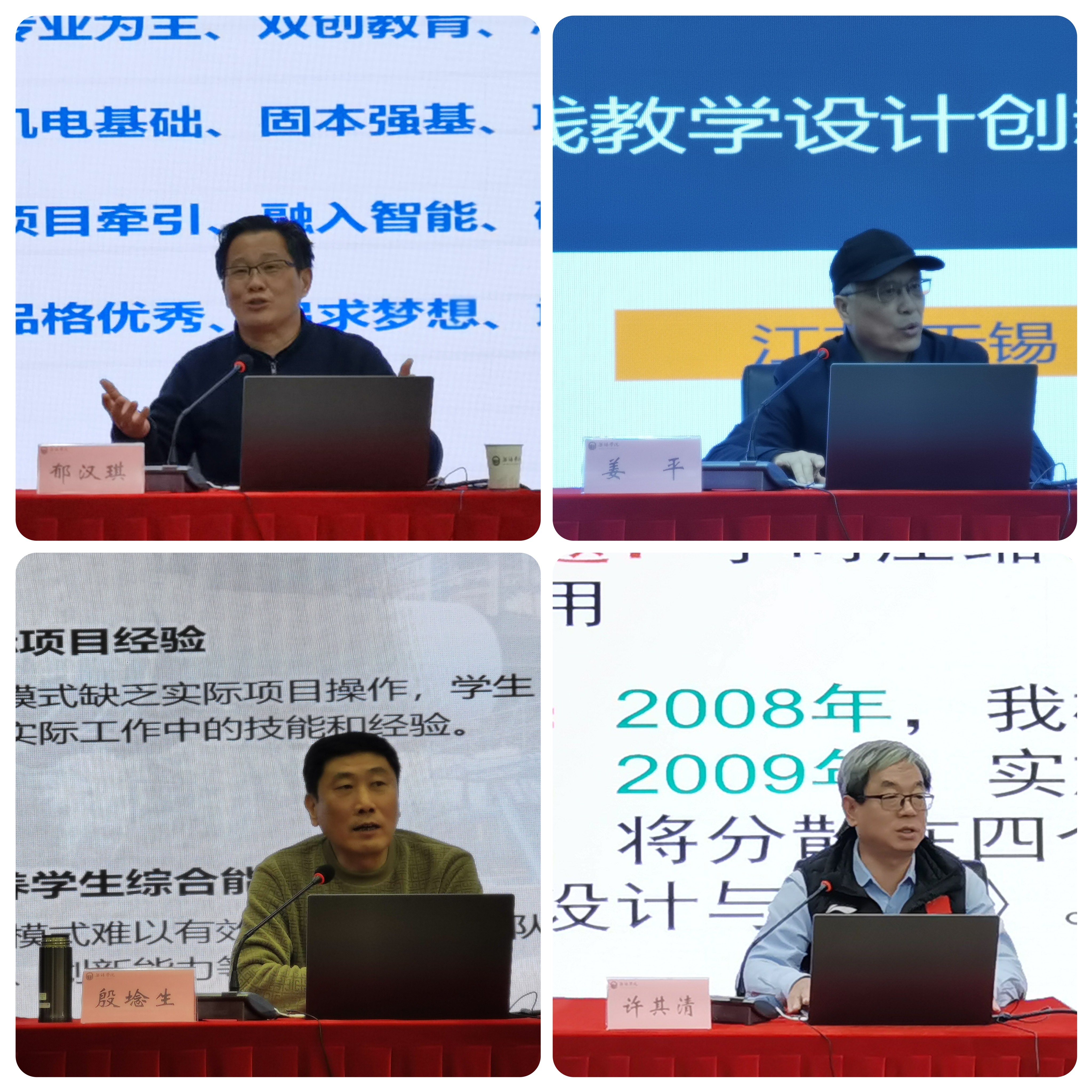 讲座环节,胡敏强以“产教融合-新工科育人模式探索与实践”为主题,围绕“产敎结合背景”“产敎结合认识”和“产敎结合实践”,讲述高校如何通过产敎结合建立新的工科体系。胡仁杰作题为“未来工程人才培养-电类基础课程体系优化整合探索”的报告,阐述了“实践育人的困难”“实践项目体系构建”“项目引领新课程”和“电类基本实验项目”等主题。徐志军作题为“信息化人才培养与高技术战争”报告,着重分析了现在高技术战争的特点,点明了信息化人才培养在现代化教育中的重要性。朱正伟作题为“实施项目教学改革,提升工程实践能力”报告,从“教学改革背景”“招生遴选”“项目课程体系”和“人才培养特色”等方面介绍常州大学信息科学与工程学院教学改革的进程。郁汉琪报告题目为“新质生产力与创新型人才培养”,就“新质生产力”和“创新人才培养”从多方面展开论述,简述了新质生产力的概念和创新人才培养的方式。姜平作题为“专业青年教师工程实践教学能力提升与创新设计大赛”报告,鼓励教师带领学生参加创新设计大赛,积极提高工程实践教学能力。殷埝生以“自动化系统集成专业项目化教学改革与实践”为主题,表述了自动化系统集成专业项目化教学的关键技术、教学设计和组织实施。许其清作题为“电子系统综合设计与训练项目化教学改革与实践”报告,阐述了电子系统综合设计与训练项目的改革思路、组织开展、改革历程、教学过程和改革成效。钱厚亮作题为“电气控制与PLC课程项目化教学改革与实践”报告,引入学习工厂的概念,将产敎结合与具体课程相结合。嵇明军以“基于STEM教育理念的大学课程教学改革”为主题,详细介绍了CDIO和STEM等新型教育理念,提出了以文科思维解读工程问题的新思路。
