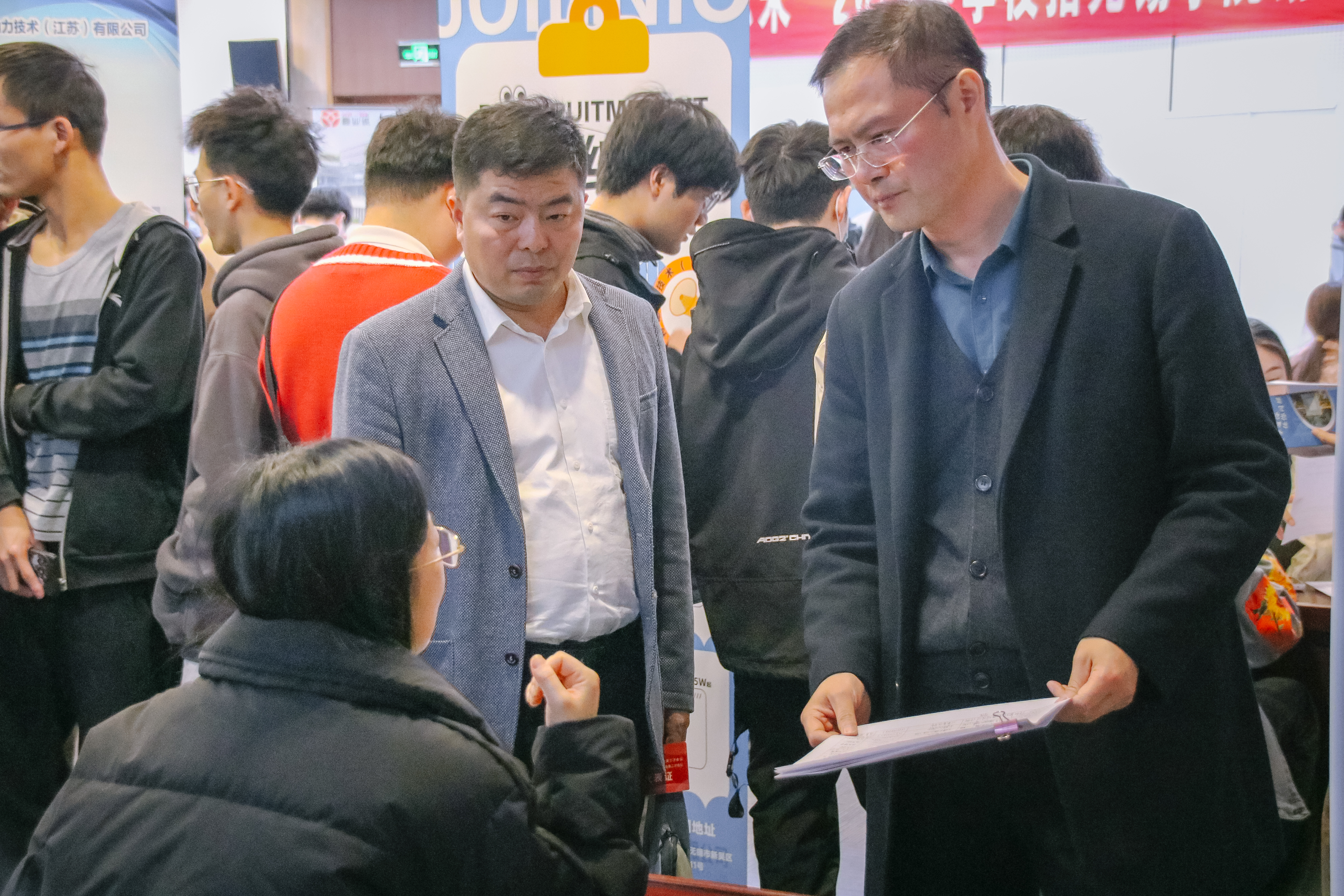 无锡市锡山区人力资源和社会保障局副局长吴柳,副校长左同宇到招聘会现场指导调研,听取用人单位对学校人才培养、专业建设、就业服务等方面的建议,了解用人单位的人才需求。各学院党总支副书记和辅导员也来到现场,积极向用人单位推荐毕业生。