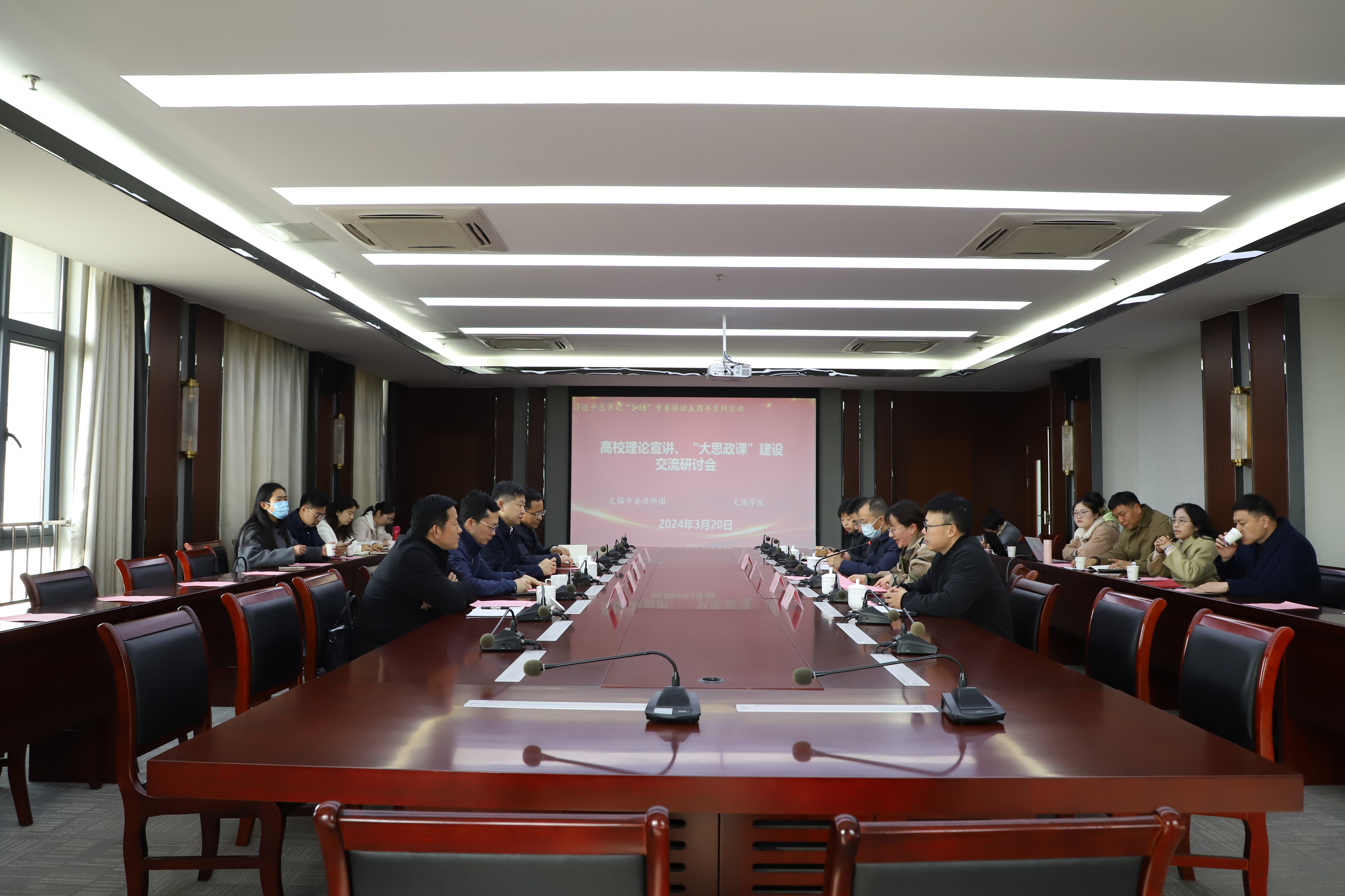 3月20日上午,在学校思想政治理论课教师座谈会召开五周年之际,无锡市委讲师团来校调研高校理论宣讲与“大思政课”建设工作。市委讲师团团长王铭涛、市委讲师团办公室主任冯树洋、市委讲师团教研室主任徐峰、“学习强国”无锡学习平台编辑组组长尚笑雄、锡山区委宣传部党教理论科科长钱祖平出席会议。我校党委副书记匡辉,教务处、宣传部、学工处相关单位负责人,马克思主义学院教师代表,辅导员代表参会,会议由马克思主义学院副院长沈妉主持。