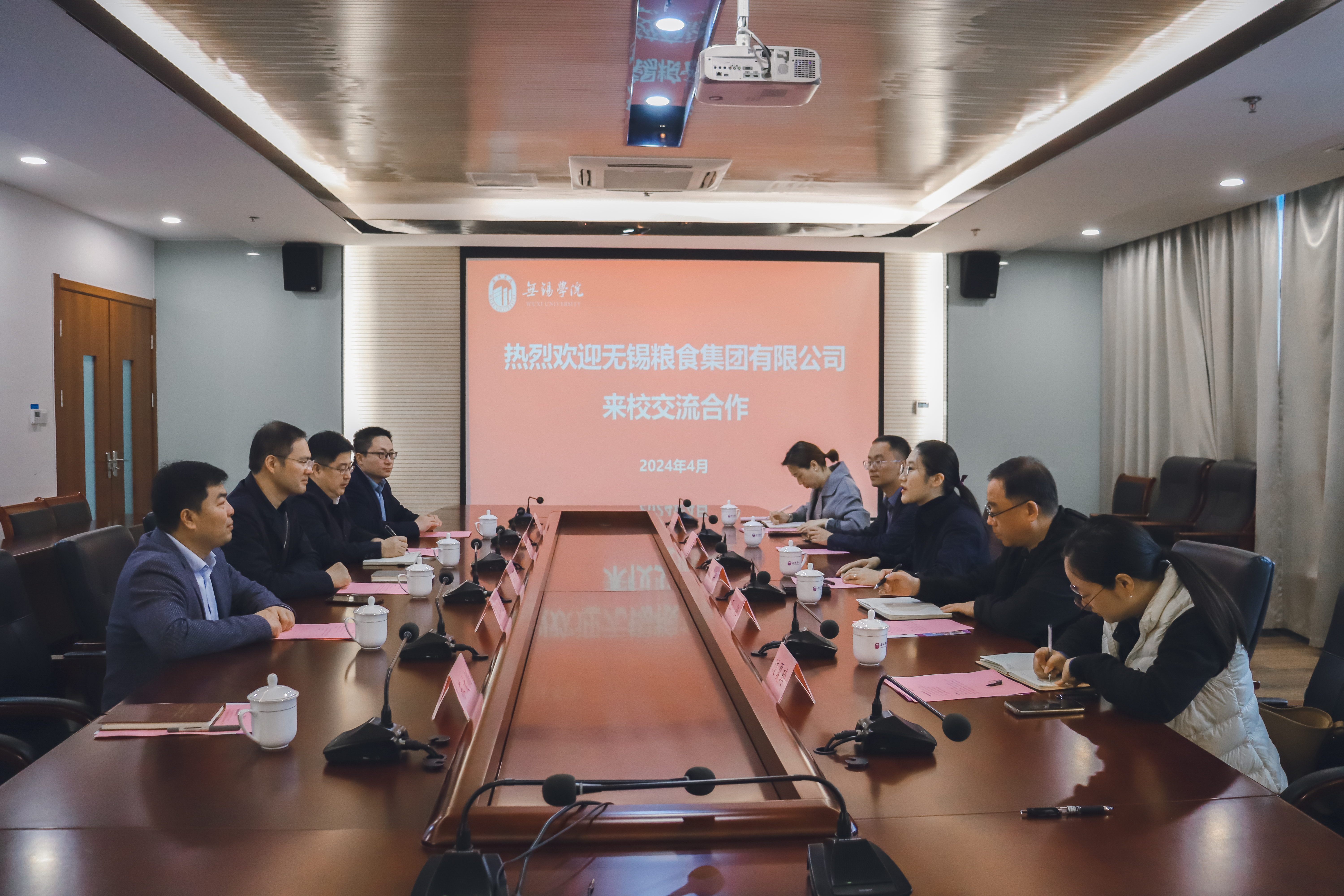 4月2日上午,无锡粮食集团有限公司党总支书记、董事长何舟一行来我校交流合作,副校长左同宇,党委组织部、统战部负责人及相关职能部门负责人参加交流会。