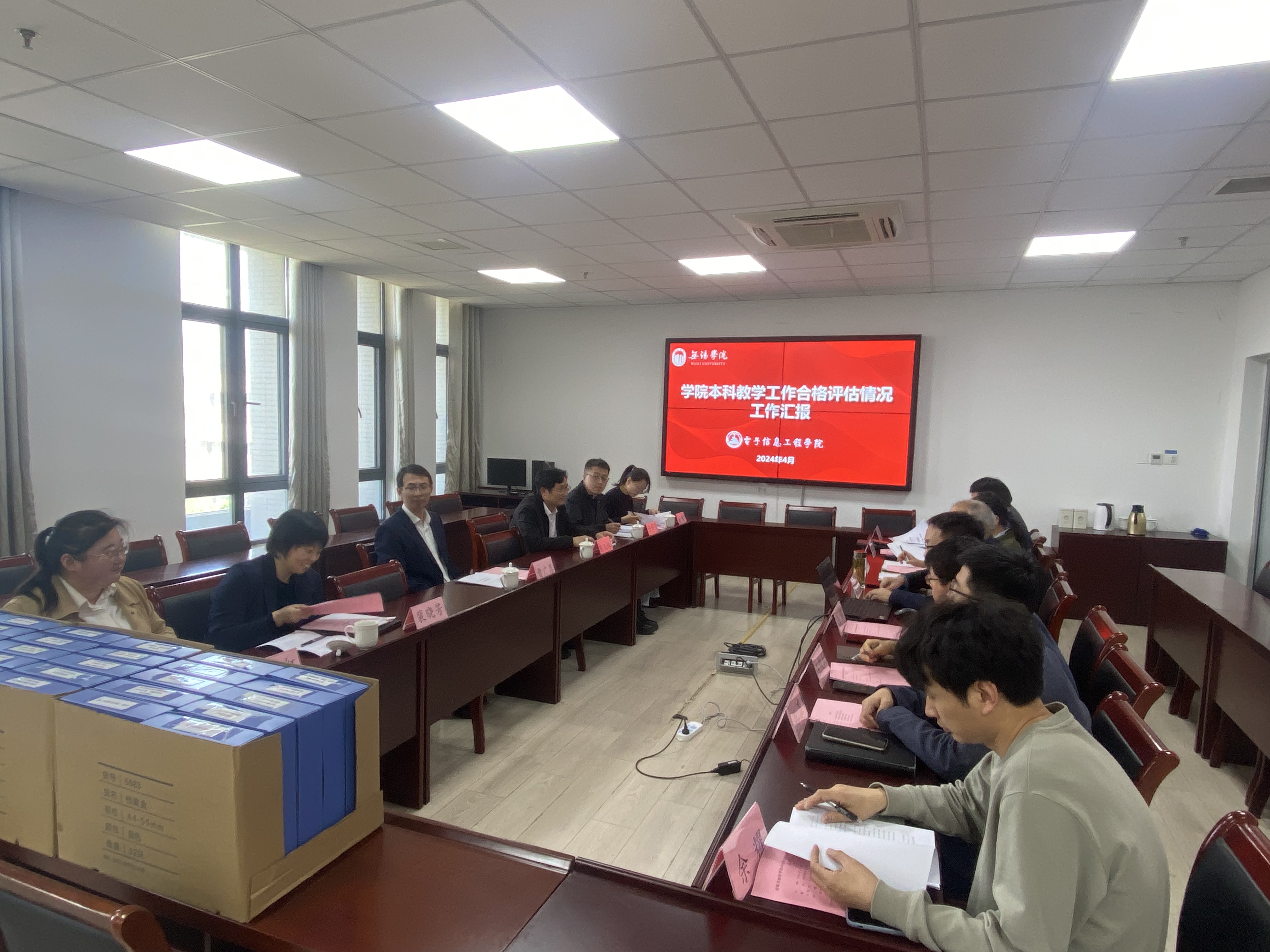 为扎实、有序、高效推进本科教学工作合格评估,2024年4月18日下午,副校长曹广喜带队赴电子信息工程学院调研本科教学合格评估工作的准备情况,教学评估中心常务副主任陈玉林,教务处副处长裴晓芳、李燕飞,教务处科长葛琴,纪委办公室科长贾岳红等组成专项检查组陪同调研。电子信息工程学院院长郭业才,副院长王伟、党总支副书记曹琳,各基层教学组织负责人及教师代表参加检查会议。本次会议由王伟主持。