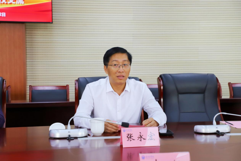 张永宏代表学校对李柏一行来访表示热烈欢迎,并详细介绍了学校的历史沿革、学科布局、师资队伍、人才培养、产教融合等建设情况。他希望双方能够以此次交流为契机,在人才培养、科学研究、实践教学等方面加强合作,提高我校办学质量。