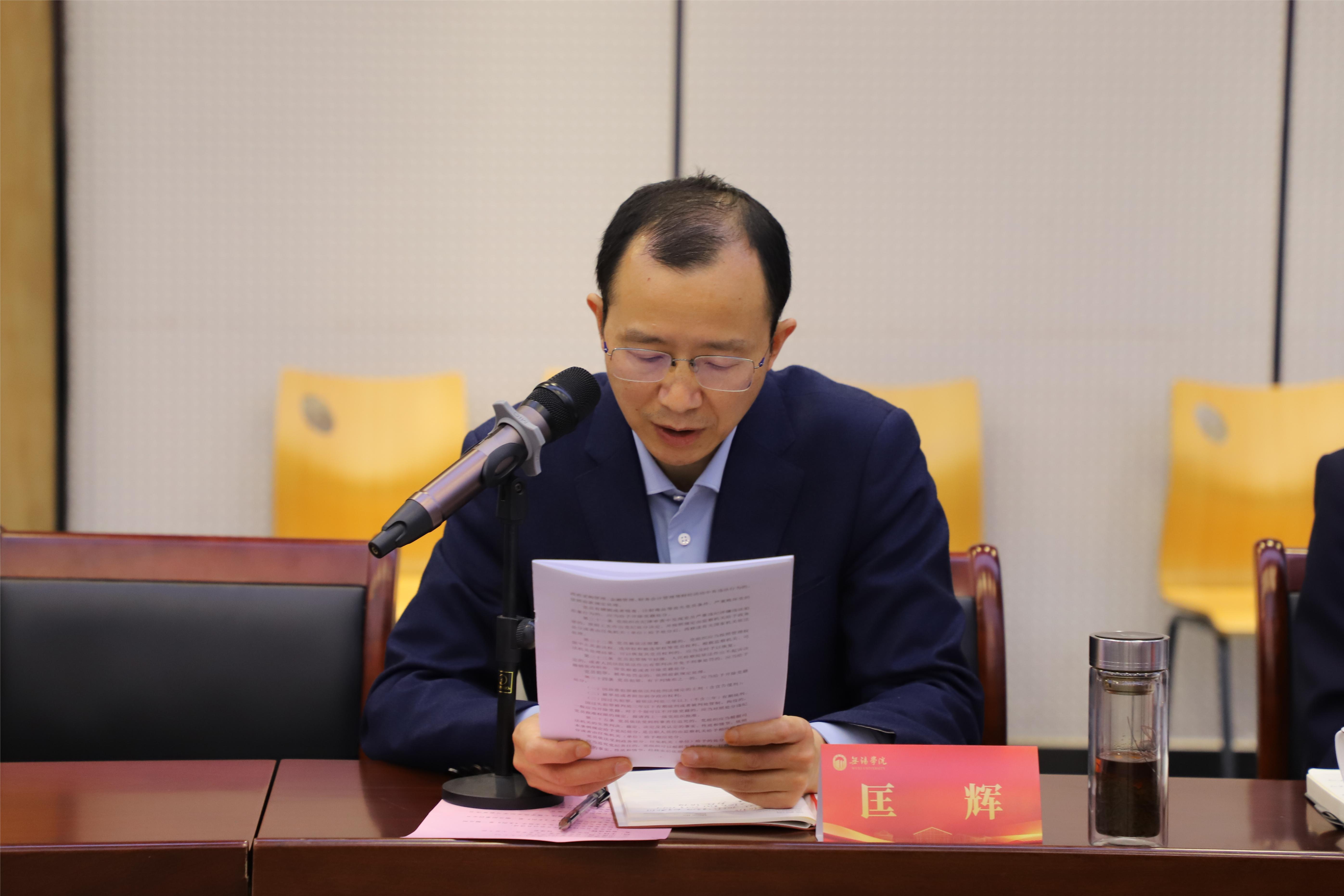 副校长胡剑凌在重点发言中表示,《条例》充分彰显了我们党推进自我革命的坚定决心和坚强意志,要在服务党和国家大局中理解《条例》修订的重大意义,做到坚定理想信念,守纪律、讲规矩;强化责任担当,敢作为、善作为;严守廉洁底线,存敬畏、握戒尺,锤炼过硬作风,提升党性修养,为学校高质量发展凝聚力量。